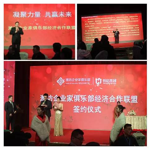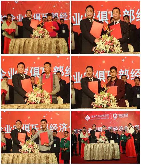 潍坊东方企业家俱乐部执行秘书长张明伟首先介绍了潍坊东方企业家俱乐部经济合作联盟相关情况。随后,潍坊东方企业家俱乐部同潍坊恒信建设集团、山东乐化铝塑制品有限公司、潍坊丰华(集团)公司、潍坊中盛民间资本管理有限公司、潍坊鑫恒泰公司、潍坊市双庆电器有限公司潍坊东方好莱坞国际娱乐连锁机构、威龙电子商务科技有限公司、山东永博文化创意有限公司、新晨报潍坊早读、山东鑫富实业有限公司、潍坊吉缘堂中医研究所、山东衡明律师事务所、圆通快递潍坊公司、潍坊无敌家智能科技有限公司、潍坊电台最爱调频98.3、尚影堂文化传媒有限公司潍坊美年大健康健康管理有限公司、潍坊京华印务有限责任公司、芝兰花府、潍坊圆梦文化传媒、潍坊百耀进出口贸易有限公司20多家企业进行签约。