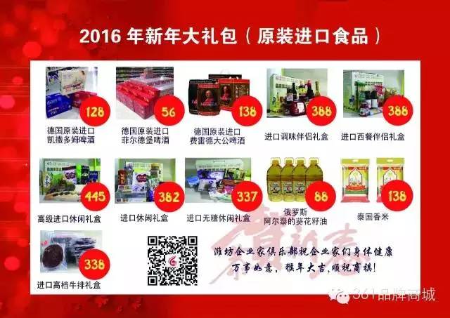 年货是过年的头等大事,潍坊东方企业家俱乐部推出多款”爆款“进口年货和有机特产礼盒,诸如西餐伴侣、高端休闲礼盒、调味伴侣、无糖礼盒、啤酒礼盒、高档牛肉礼盒、进口水果等涉及到生活的方方面“尖儿货”,足以让你一站搞定,一次购到high,吃到尽兴,回家送礼送出“局气”!!(电话:0536-8237609)