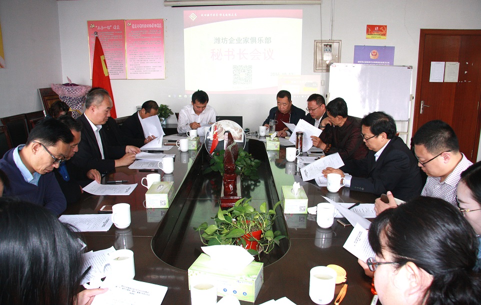 3、会议就企业家经济合作互助联盟的运营意义和内涵做了分析说明,同时就近期潍坊东方企业家俱乐部秘书处的一些具体工作进行了分工布置。