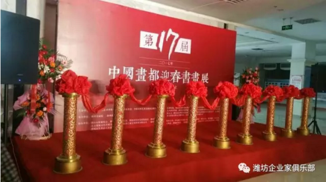 由潍坊市文联、潍坊市慈善总会会、中国书画艺术交流协会潍坊分会主办,潍坊东方企业家俱乐部、山东润士通文化传媒有限公司等单位协办的《中国画都第十七届迎春书画展》开幕式于4月30日上午在368美术馆隆重举行!潍坊东方企业家俱乐部首席顾问、市政协原副主席赵俭,潍坊东方企业家俱乐部高级顾问、市人大原常委邢乐信,潍坊东方企业家俱乐部副会长兼轮值秘书长韩绍毅,副会长冯义平,副秘书长郭剑锋,本次画展策展人、潍坊东方企业家俱乐部副秘书长兼文化交流小组组长、潍州书画院院长陈建立等有关领导、艺术家以及书画界、企业界和新闻媒体等200余人出席了开幕式。