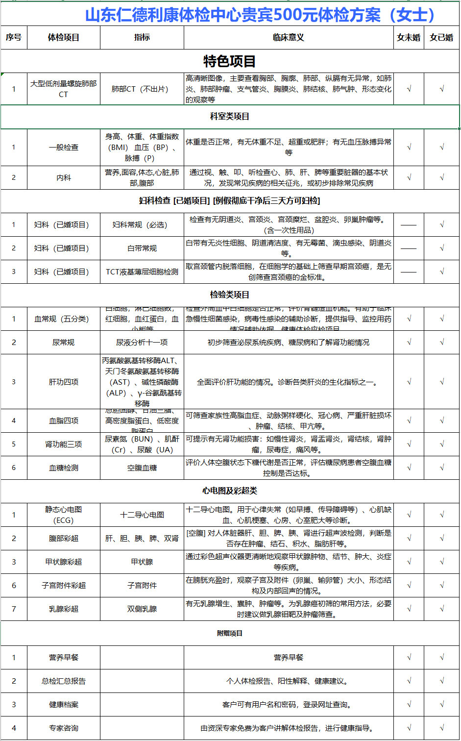 我们推荐的是潍坊东方企业家俱乐部的常务会长单位——阳光融和医院,以及VIP会员单位——仁德利康健康管理有限公司为大家精心准备的体检套餐,所有套餐价格都是潍坊东方企业家俱乐部专属优惠。您如果真心关爱您的家人或员工,那就一块来做一次全面的健康检查,享受我们高质量的VIP保健服务!