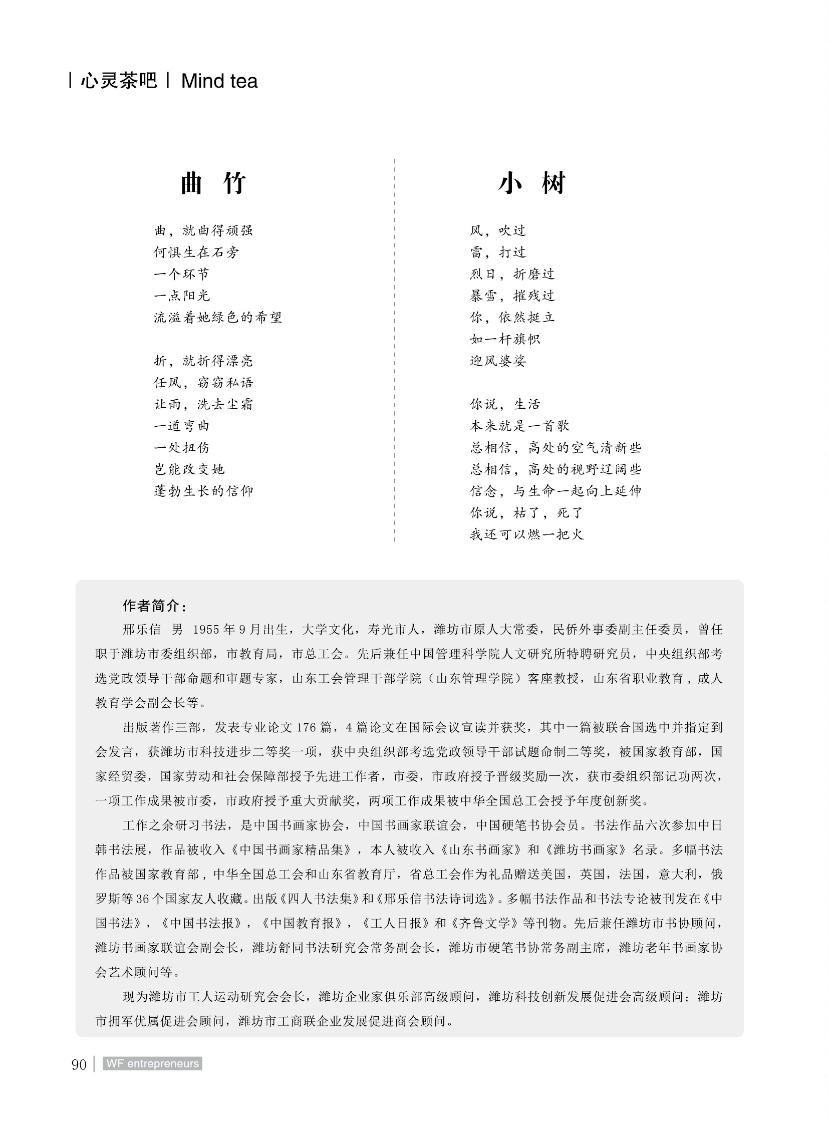 【心灵茶吧】潍坊市原人大常委邢乐信诗选