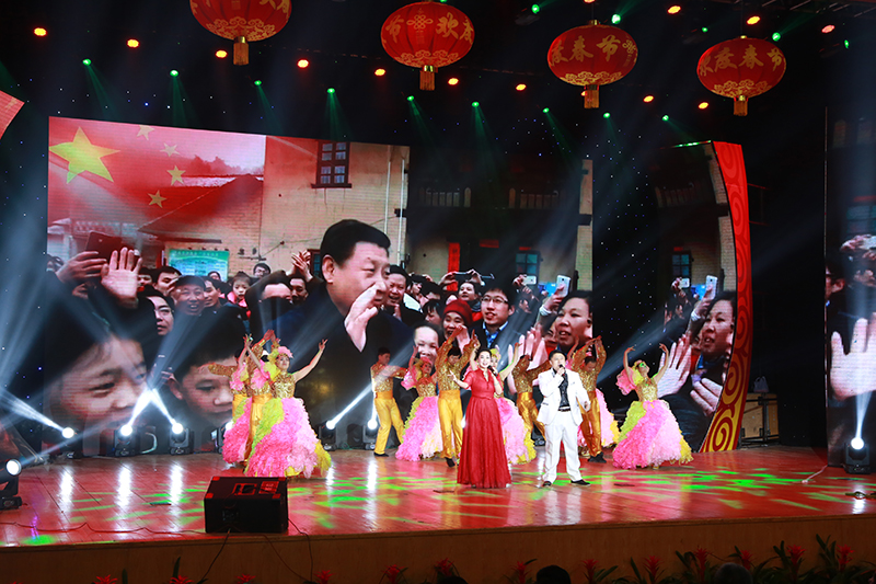 歌舞、相声、小品、大合唱……丰富多彩的晚会节目,使演出现场气氛热烈。