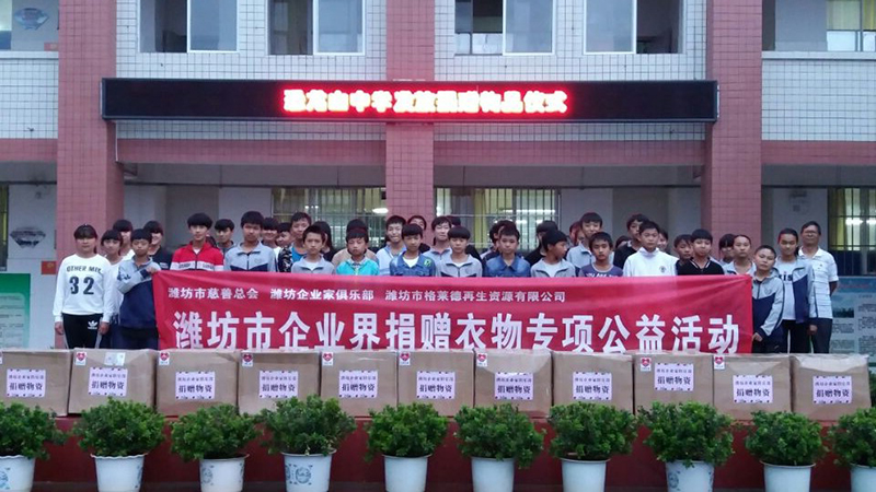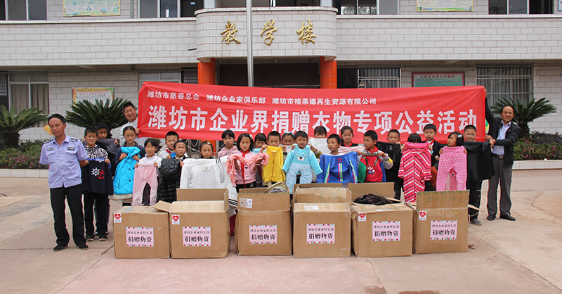 4月23日,由潍坊市慈善总会、潍坊东方企业家俱乐部、潍坊日善公益服务中心联合发起、募捐的1000余件,共34箱爱心衣物寄往云南省禄丰县。经过了几千公里的路程,已顺利到达目的地,在举行完捐赠仪式后及时发放给三个学校的学生,为他们送去了祝福与温暖。