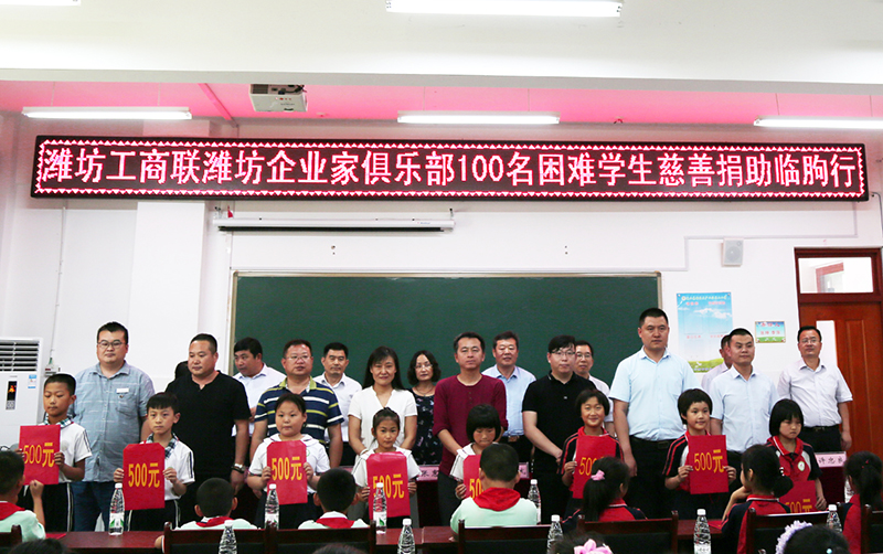 为更好地帮助贫困学生,进一步履行企业社会责任,助力教育事业,潍坊东方企业家俱乐部在接到市工商联组织直属商会开展《为困难学生献爱心活动的通知》后,积极响应,潍坊恒信建设集团、潍坊总部基地等40余家爱心会员企业迅速行动,仅仅三天的时间捐赠现金6.25万元,帮扶困难学生125名,超额完成预期目标。