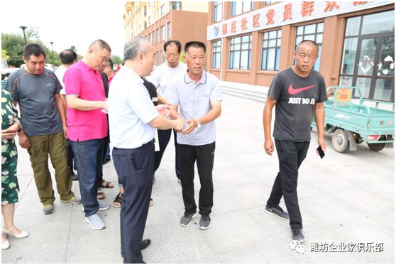 8月26日,潍坊东方企业家俱乐部一行在会长王大威的带领下带着1万余元生活物资和2万元现金来到寿光羊口镇,潍坊东方企业家俱乐部荣誉会长张伟;常务会长程亚利、杜其强;监事长孙建文;副会长郝惠娟、郭剑锋、周会芝、王玉梅;副秘书长张明伟、张帅帅、刘世鹏;理事单晓春、宋华勤;企业家代表韩效玉、韩文强、游文魁及887电台、潍坊大众网等媒体朋友共同参加了捐赠活动。交流中,王会长详细询问了受灾情况,生活方面的困难,并向灾区的相关负责人提出建议,防止次生灾害发生。