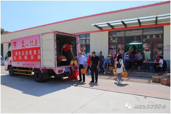 8月27日,潍坊东方企业家俱乐部带着满满一车的物资及邦泰地产捐助的2万元现金来到寿光营里镇,潍坊东方企业家俱乐部会长王大威、常务会长张光文、监事长孙建文、邦泰地产代表李大伟、鹏辉建材代表韩效玉和灾区朋友共同手递手卸载物资。卸载物资完成后,潍坊东方企业家俱乐部相关负责人和营里镇负责人提出部分防疫工作建议,祝愿灾区朋友统筹做好灾后恢复重建工作,早日恢复家园建设。