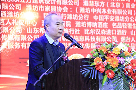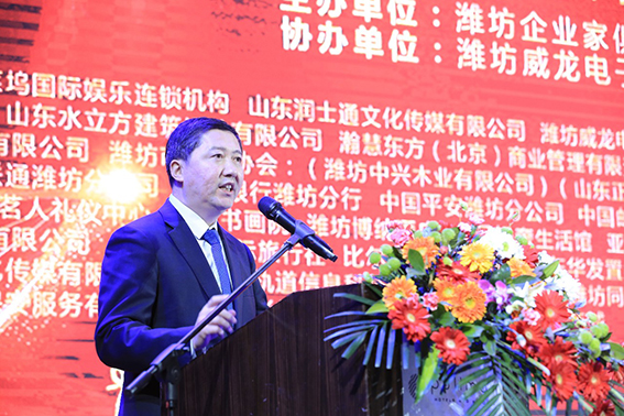 潍坊市工商联副主席郭富斌为晚会致辞,郭主席在致辞中讲到,潍坊东方企业家俱乐部作为潍坊市工商联的直属商会,是潍坊市最具活力和影响力的协会之一。在潍坊东方企业家俱乐部一众领导班子的带领下,会员服务效果明显,成绩显著,为潍坊经济建设、为潍坊市工商联行业组织建设工作增添了浓墨重彩的一笔。同时他针对潍坊东方企业家俱乐部下一步的发展提出了新的希望与要求。