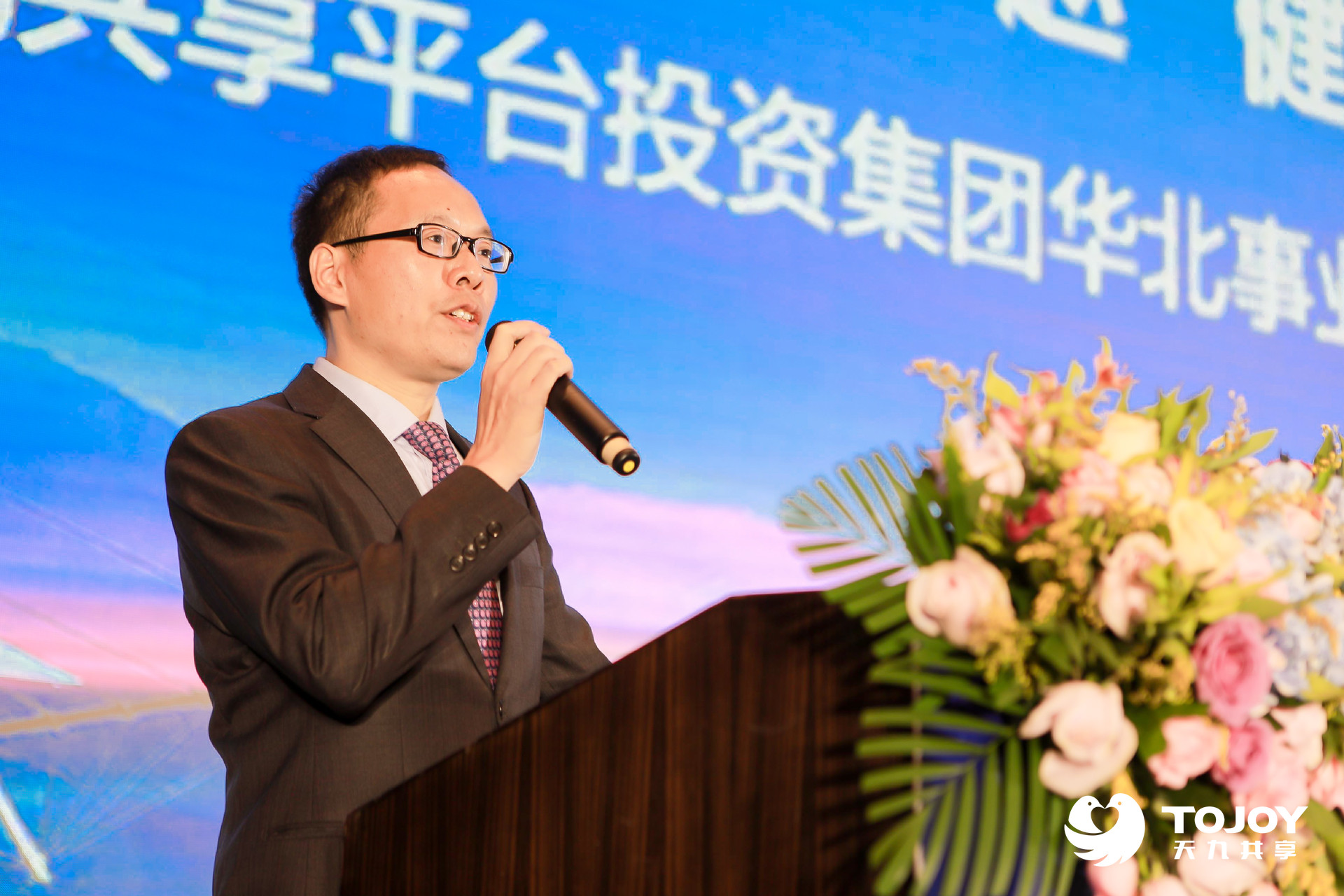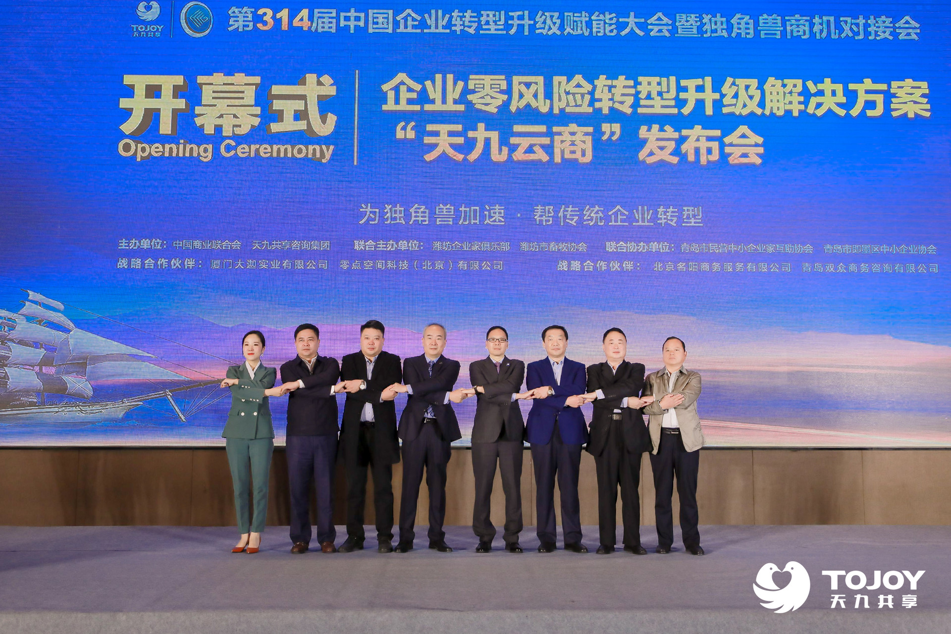 天九共享平台投资集团华北事业部青岛子公司总经理赵健,做了《企业零风险转型升级解决方案》的主旨报告,受到与会领导高度赞誉。