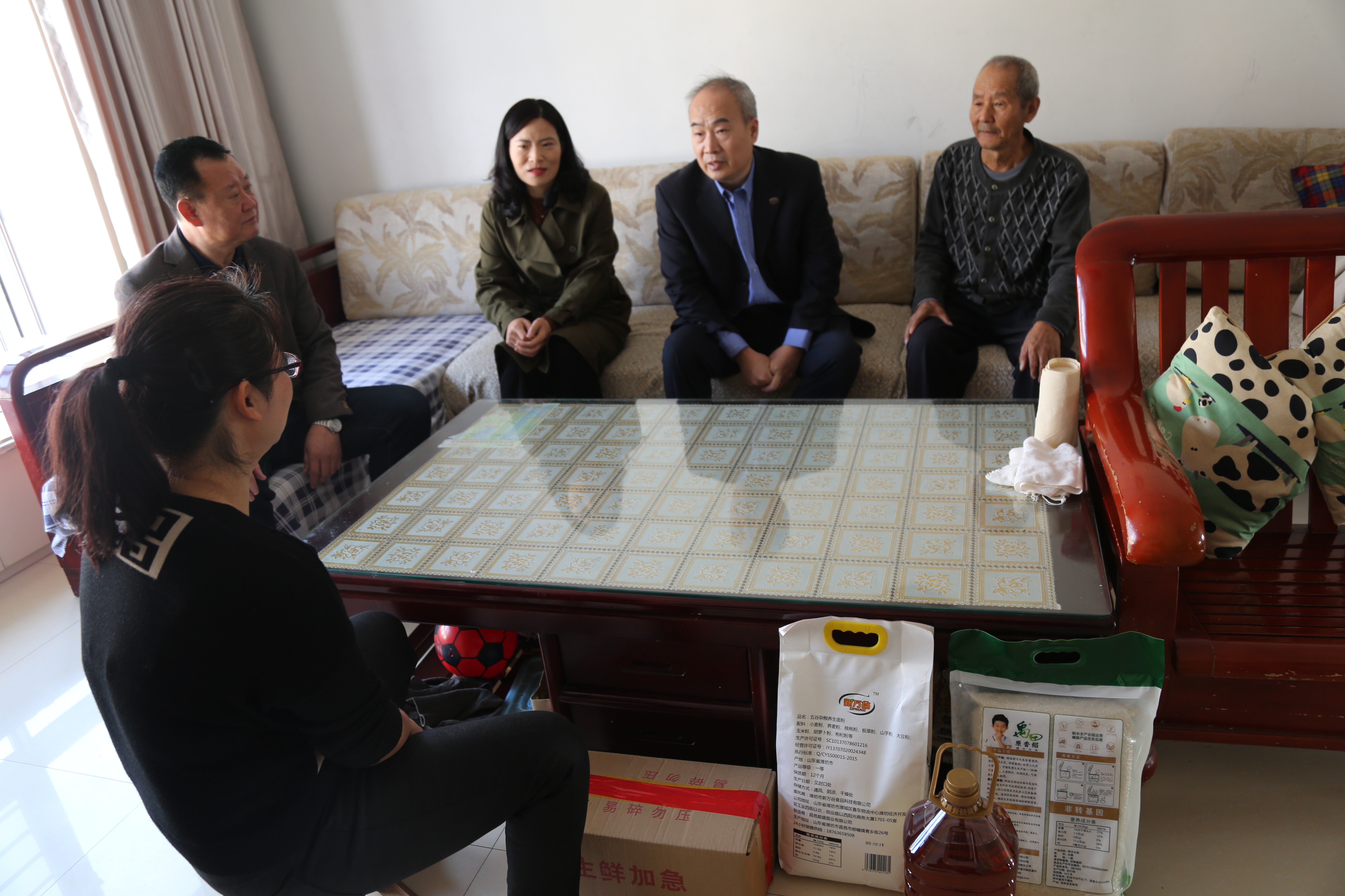 奎文区新联会会长赵振玺,潍坊东方企业家俱乐部会长、奎文区新联会轮值会长王大威,奎文区新联会轮值会长邱婷、黄健,副会长王传勇、杜洪强、章和平,秘书长张华、副秘书长姜顺凯、王一鸣,轮值秘书长盛雪潇等一行人与受助家庭拉家常、谈家事,了解贫困户的生产生活情况以及贫困户收入情况,为他们细细讲解互联网新模式是如何做到精准扶贫以及如何利用经济互助平台帮助自己脱贫致富,王会长鼓励贫困户要坚定信心、克服困难,相信他们的日子一定越来越好,生活越来越幸福。