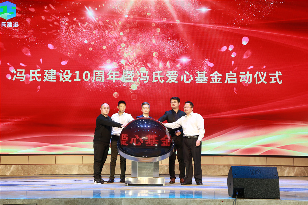 山东冯氏工程建设有限公司在企业发展的同时不忘回馈社会,在晚会中,潍坊东方企业家俱乐部副会长、山东冯氏工程建设有限公司总经理冯义平,潍坊东方企业家俱乐部副会长、山东润生集团董事长王强等领导共同为冯氏爱心基金转起启动球,标志着冯氏爱心基金正式成立。