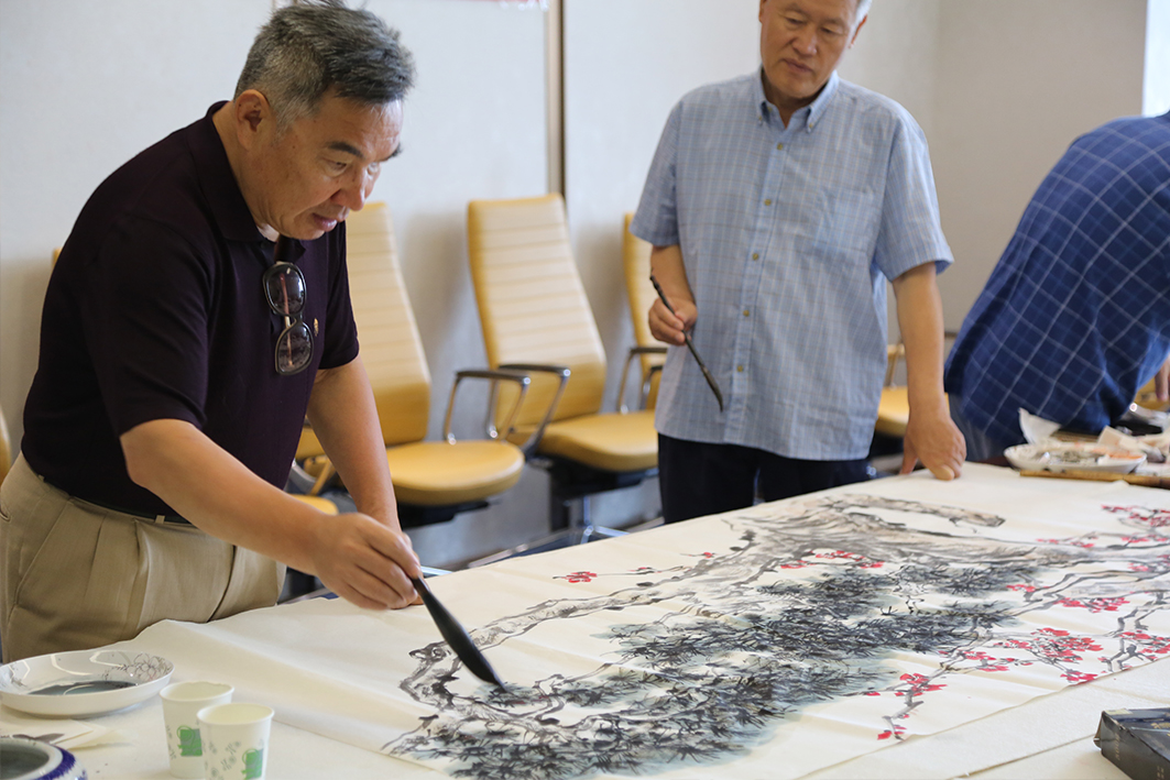 本次活动,邀请到了潍坊同志画社副社长韩子富,潍坊同志画社常务副社长兼秘书长刘伟,潍坊同志画社常务副社长孙建希,潍坊市书协副主席兼秘书长谭晓昌,潍坊市美术馆常务副馆长张伟华,潍坊同志画社常务理事张子刚。艺术家们挥毫泼墨,展露才艺,现场创作笔绘作品数幅。