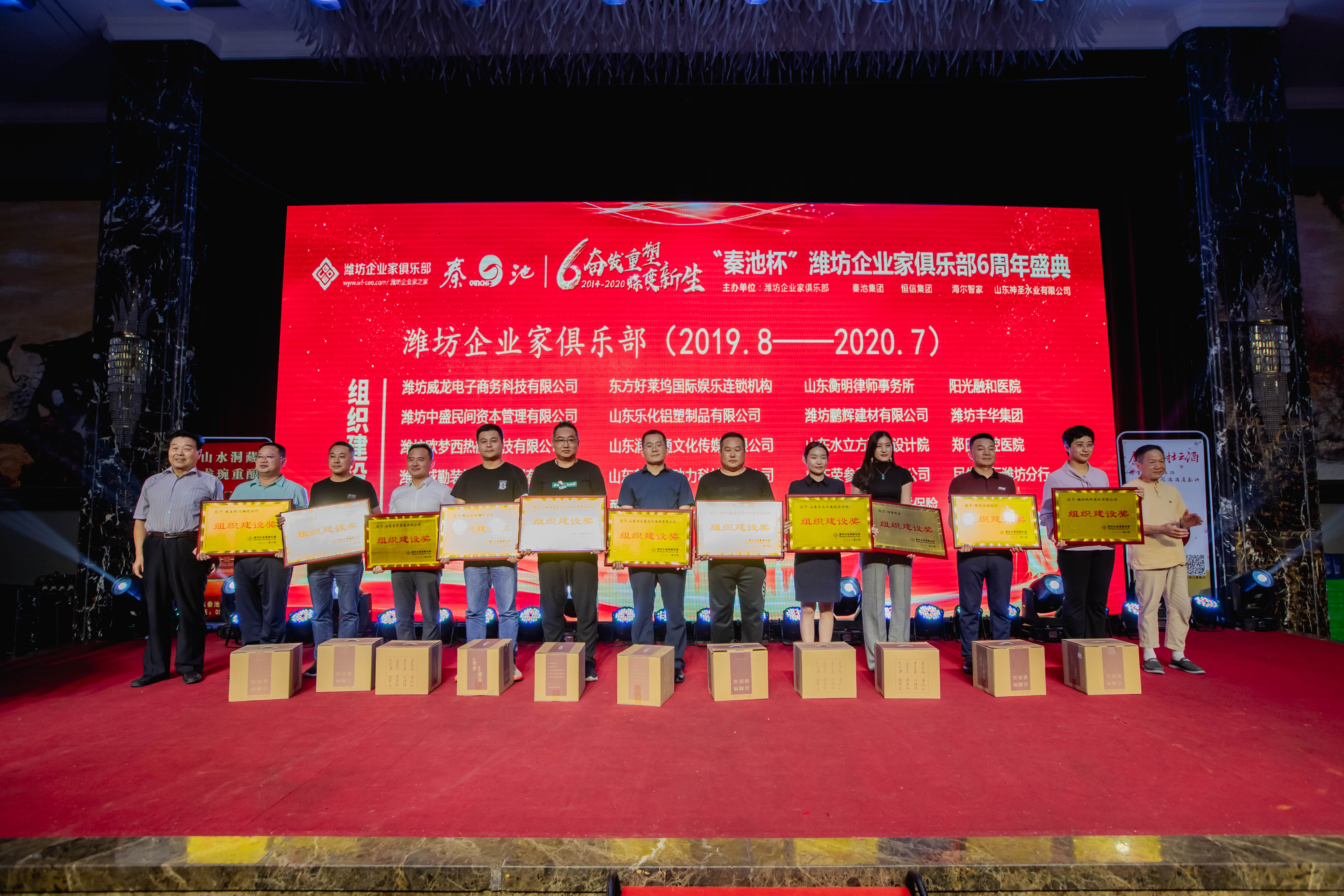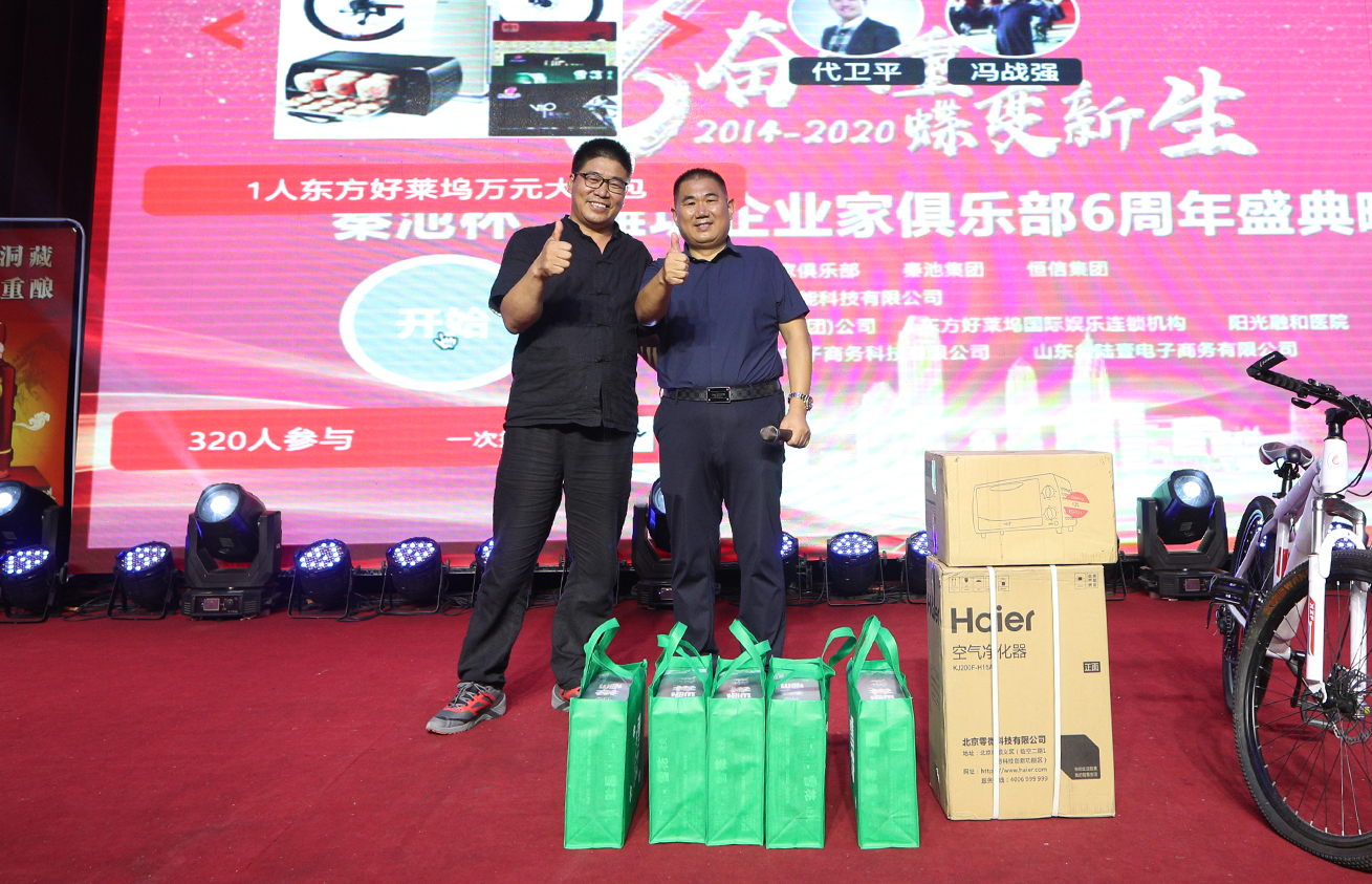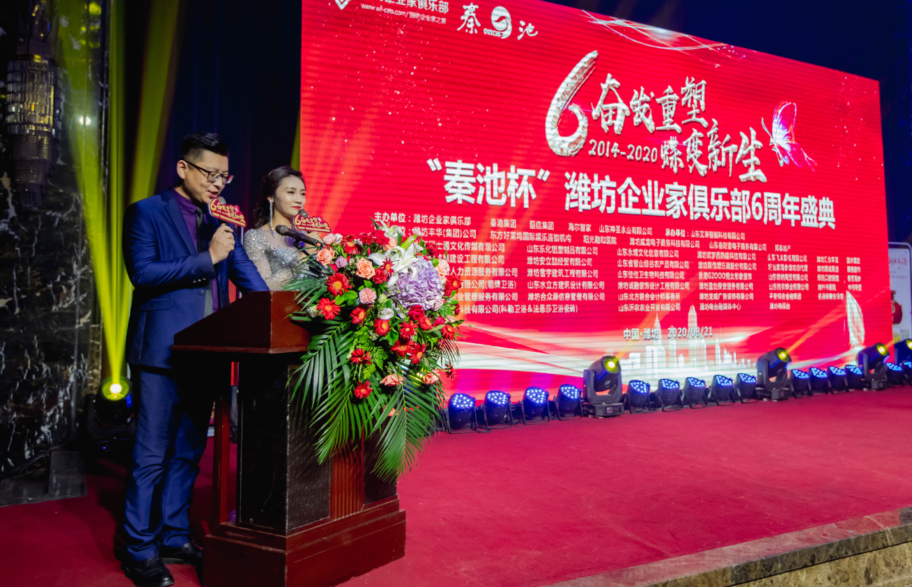 8月21日,由潍坊东方企业家俱乐部、秦池集团和恒信集团主办,山东艾琳智能科技有限公司承办,潍坊丰华(集团)公司、东方好莱坞国际娱乐连锁机构、邦泰地产、阳光融和医院、潍坊威龙电子商务科技有限公司、山东叁陆壹电子商务有限公司协办的奋发重塑·蝶变新生“秦池杯”潍坊东方企业家俱乐部六周年盛典晚会在新富佳悦大酒店成功举办。
