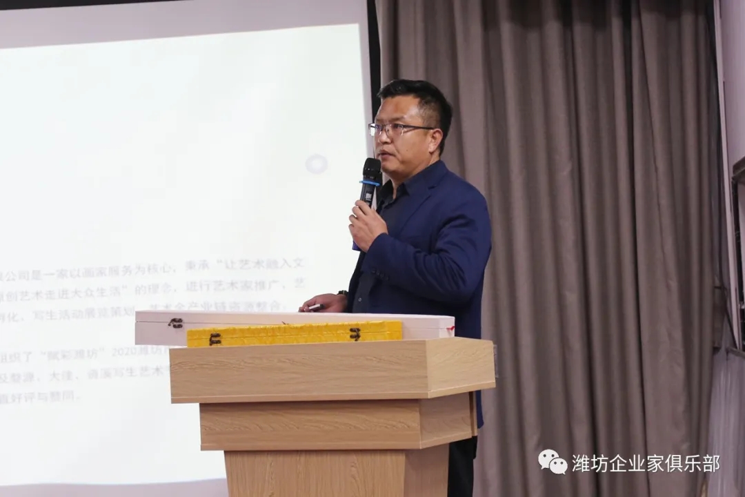 王大威会长在讲话中强调,潍坊东方企业家俱乐部经济项目合作是重点且长期性的服务板块,它具有开放性,不局限于会员内部,欢迎各界的优质资源、项目的洽谈合作。希望通过潍坊东方企业家俱乐部平台的牵线搭桥为企业赋能实现共赢。通过前期的项目征集、筛选,本次活动共甄选八个优秀项目,涵盖了金融、农业、文化影视、智能家居、信息存储等行业领域。