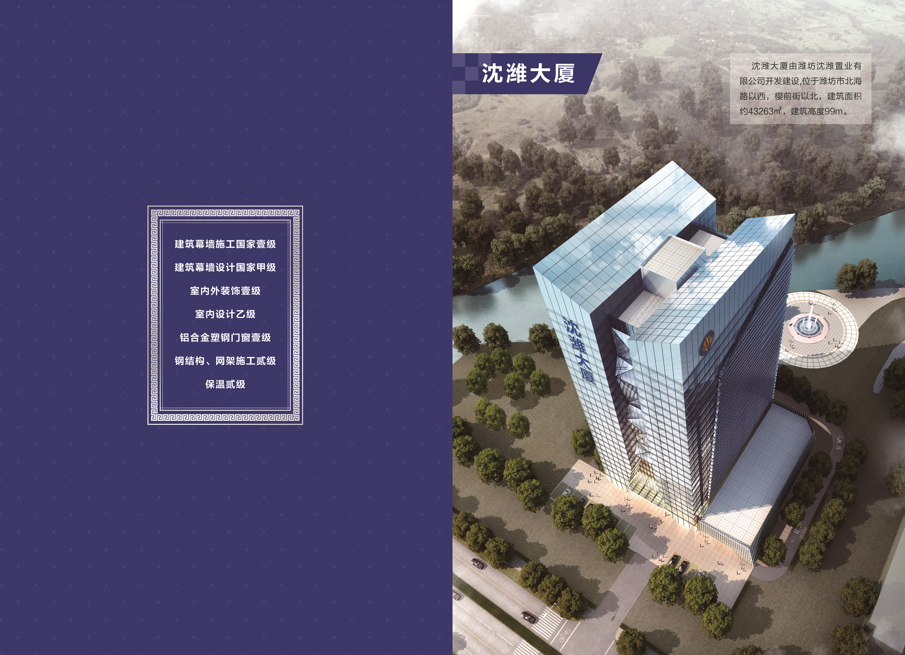 公司总部座落于世界“风筝之都”山东省潍坊市奎文区,占地面积80余亩。沈潍坚持以科学发展观为指导,以美化人类生存环境为追求,本着“友谊、诚信、互利”的原则,在实践中锻造新型的多元化、信息化、智能化建筑幕墙专业化人才队伍,优化内部结构,强化企业管理,打造沈潍特色的企业文化。积极践行诚实、诚信的经营信条,以节能为前提、以环保为基础,以技术为核心、以质量为生命,创新设计高质量的绿色建筑,用爱心建造和谐文明的生存空间!
