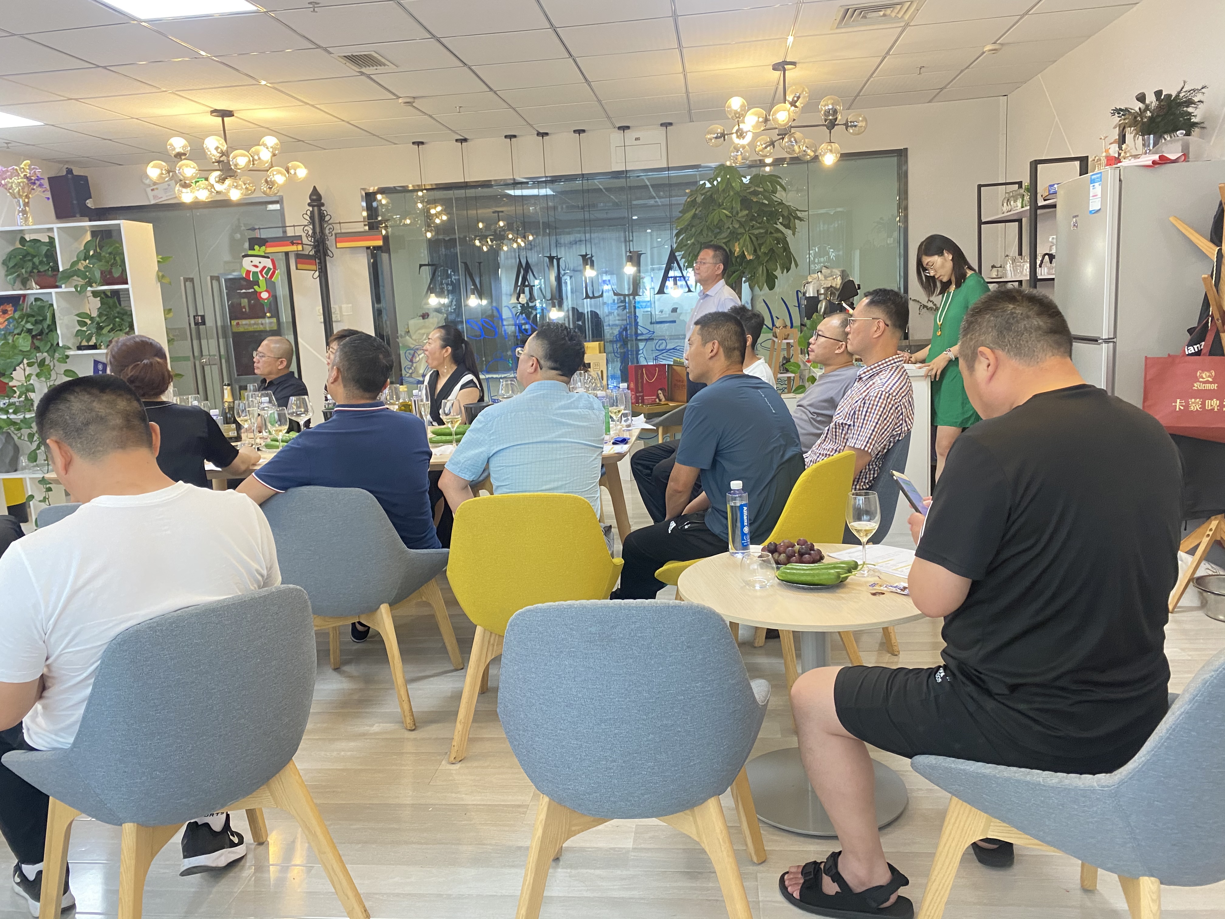 交流会上大家自我介绍并介绍公司,品鉴着美酒伴着美食,有说有笑,加深了彼此的了解,从认识到熟悉,从熟悉到熟知,不仅交流着工作中合作的机会也寻找到了爱好相同、志趣相投的同道中人。