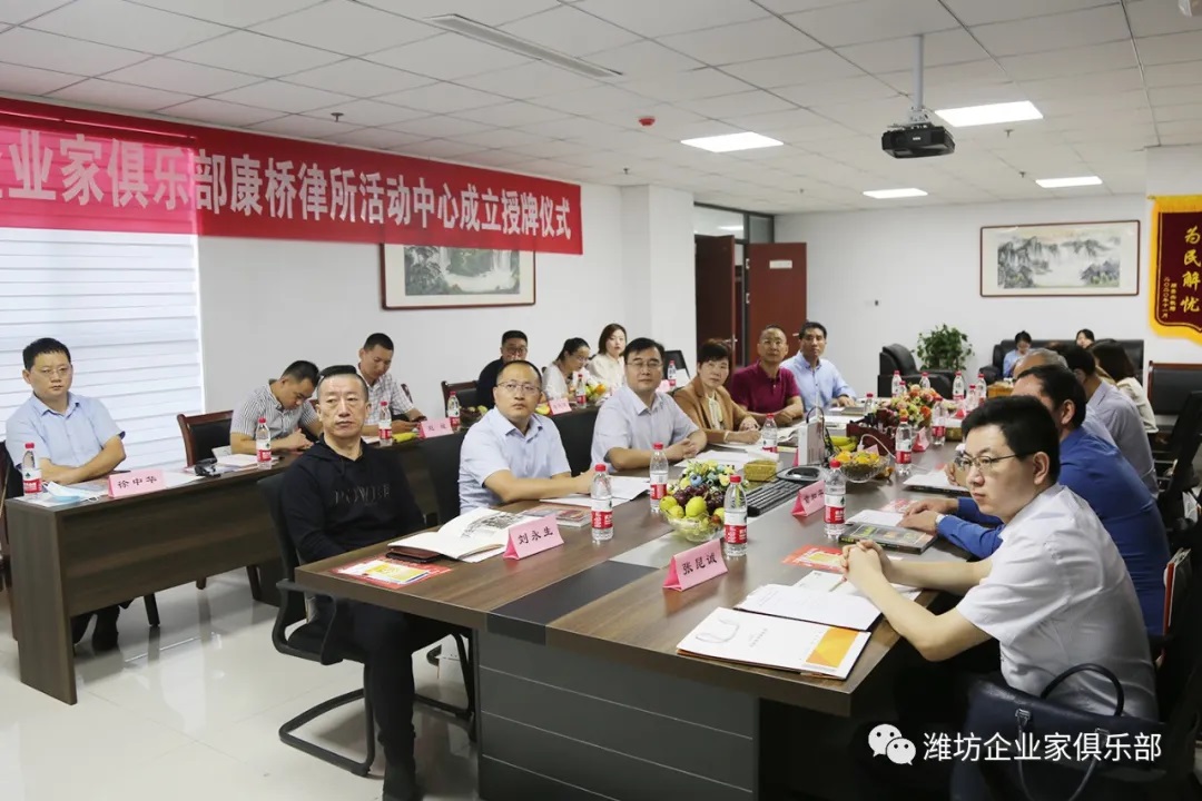 9月30日,潍坊东方企业家俱乐部2021新会员座谈会暨潍坊东方企业家俱乐部康桥律所活动中心成立授牌仪式在理事单位山东康桥(潍坊)律师事务所成功举办。