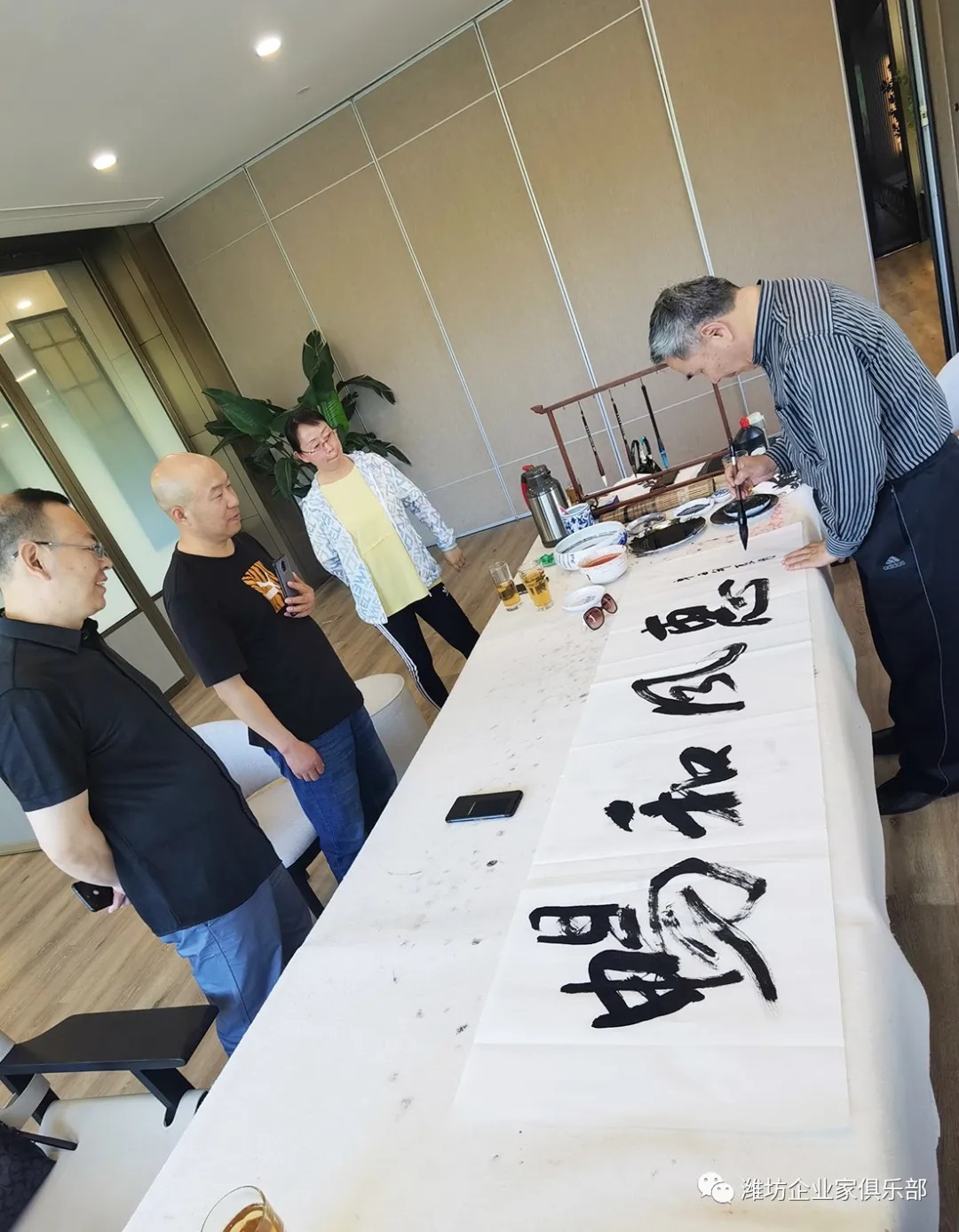 现场,大家鉴赏了潍坊书画艺术对外交流协会副主席兼秘书长韩子富先生的书画作品,在挥毫泼墨之间感受山水巍峨、悠长之态,沉浸画境之中在忙碌的生活里即时许给自己一个理想乌托邦。