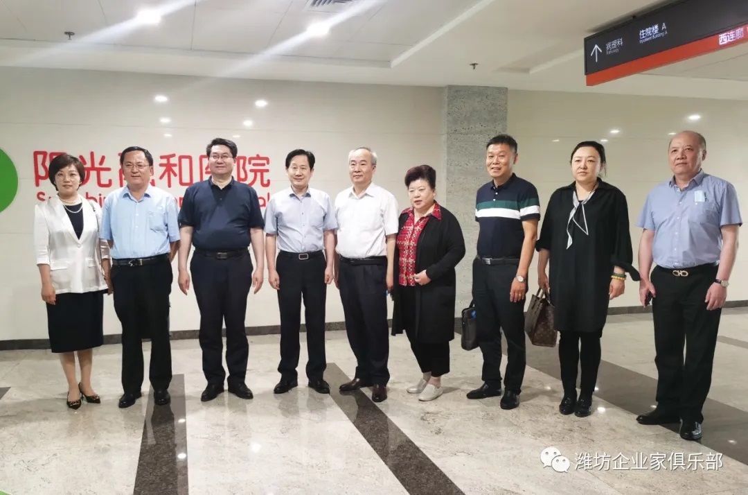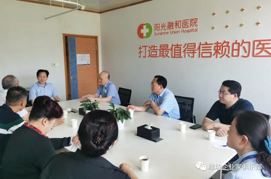 中国研究型医院协会副会长、博士生导师、阳光融和医院院长王明晓,潍坊东方企业家俱乐部常务会长、阳光融和医院副院长陈丹等作热情接待。潍坊东方企业家俱乐部一行人参观了医院的环境建设以及医疗配备,对于医院专业的医疗团队以及现代化的设施建设表示赞扬。