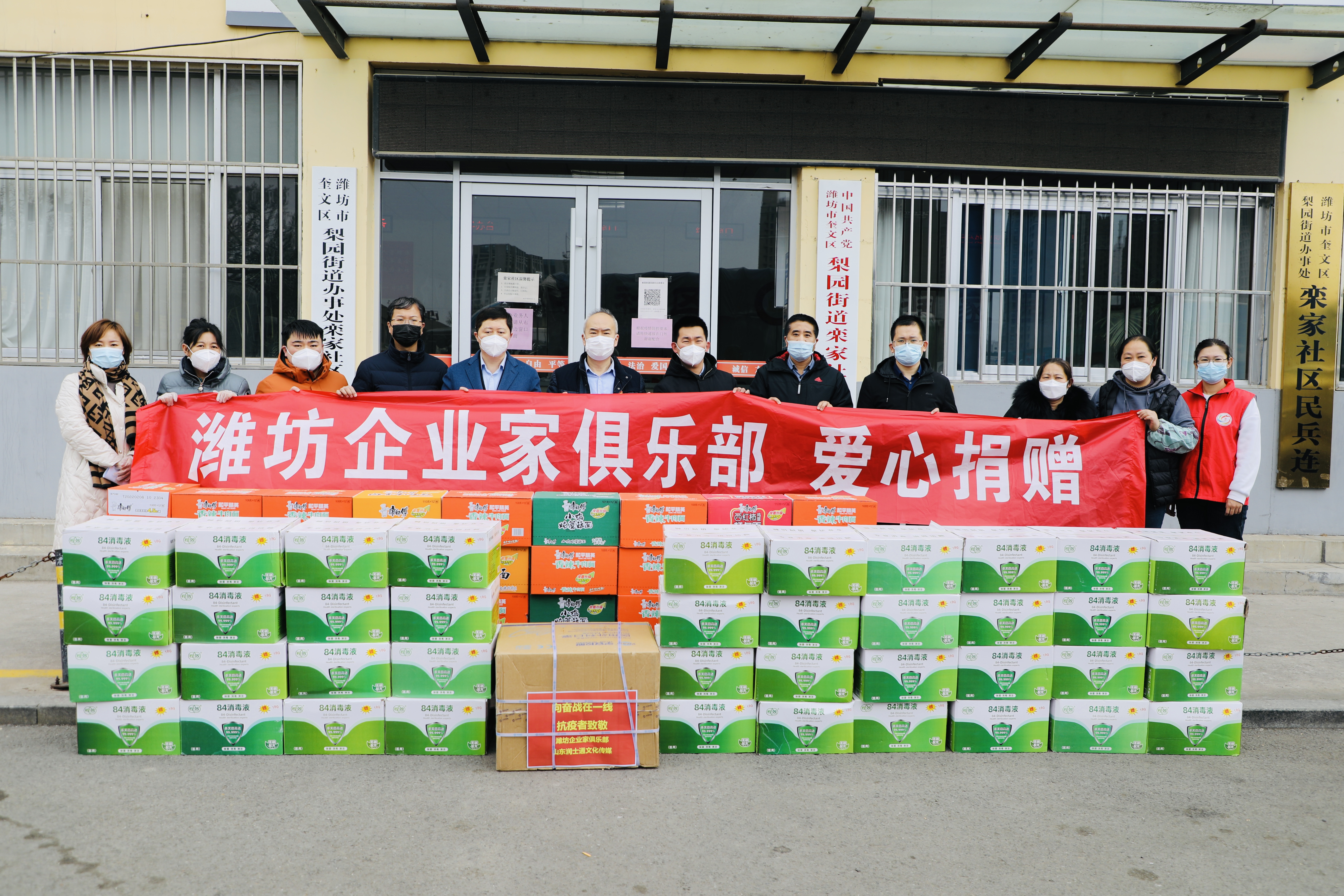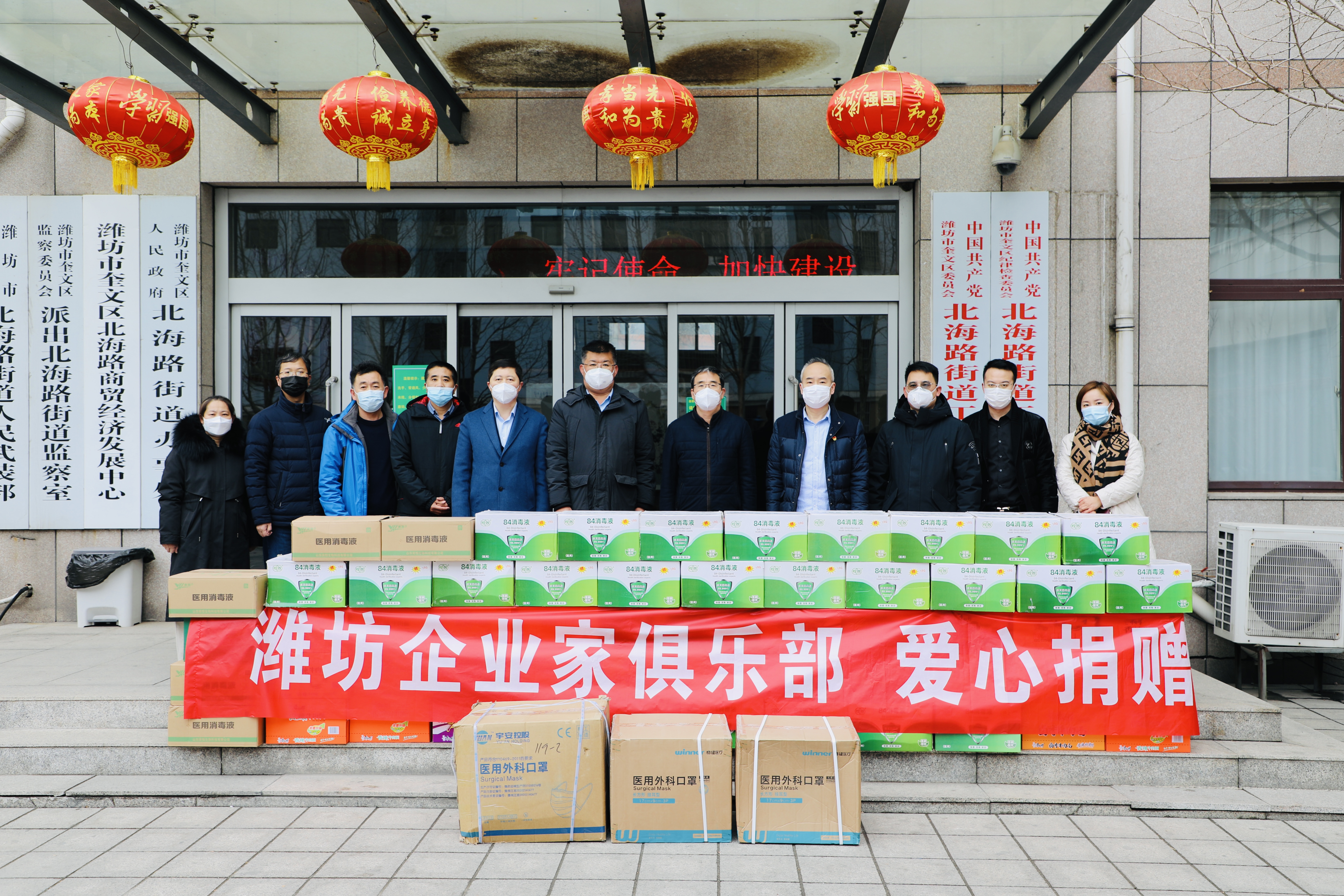 18日上午,潍坊东方企业家俱乐部会长王大威,常务会长韩宝晶、常务会长单位东方好莱坞文投集团总经理王明,副监事长单位山东北方联合会计师事务所副主任李蕾,副会长郭剑锋,副秘书长王翠萍、张光赞,理事马永富,VIP会员张昆诚代表潍坊东方企业家俱乐部携会员企业捐赠的防疫物资送至北海路街办。奎文区政协党组副书记、副主席蔺荣华,党工委书记尹昌洲现场接待并见证了捐赠。