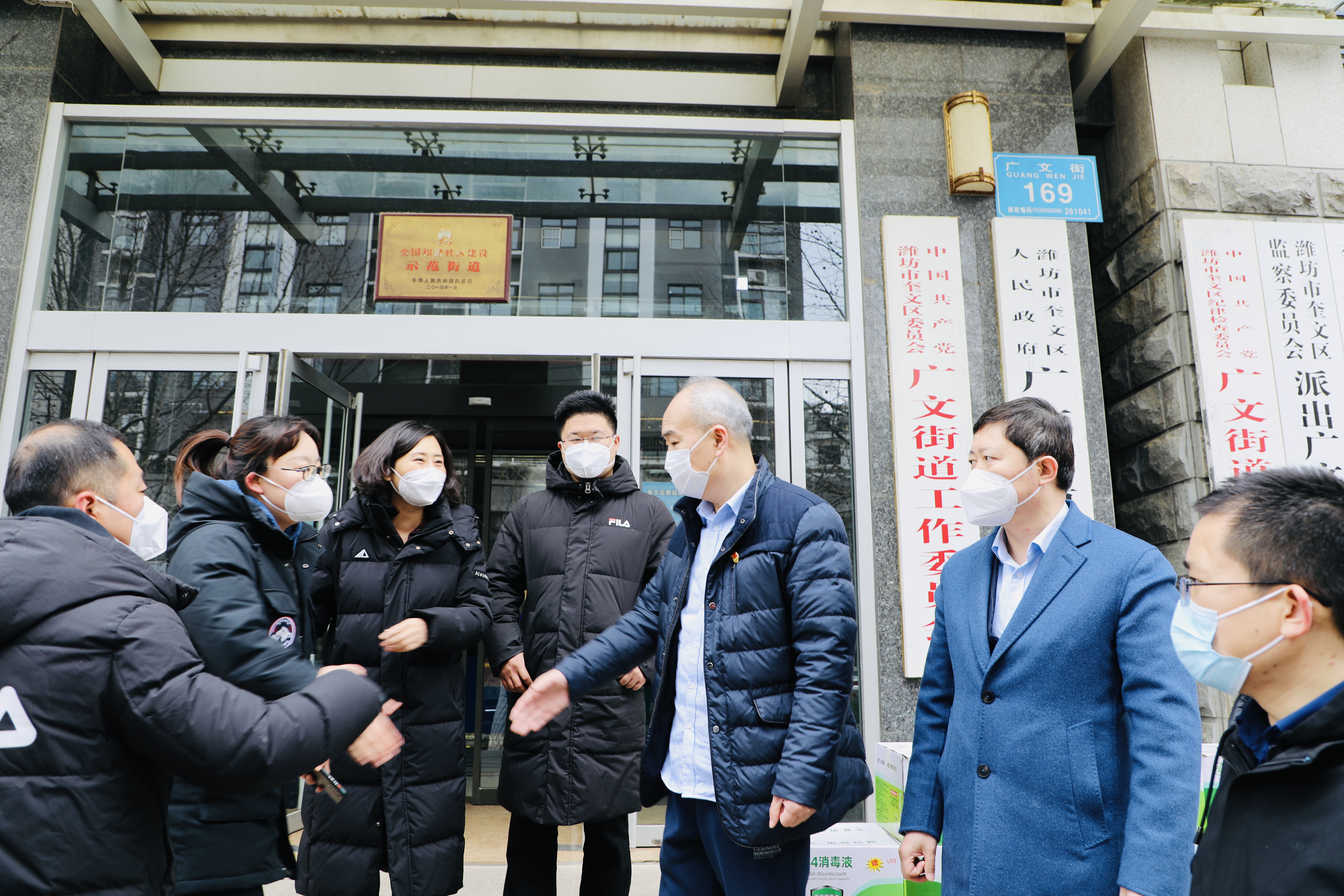 随后,潍坊东方企业家俱乐部一行又深入梨园街道重点防疫防控栾家社区、广文街办防疫基层李家社区。梨园街道办事处主任左文凯、栾家社区书记苏雪莉向潍坊东方企业家俱乐部介绍了社区基本情况和防疫工作情况。奎文区工商联党组成员、二级主任科员迟志芳,广文街道主任林琳,李家社区书记杨海霞陪同活动并参与了社区防疫物资的捐赠活动。