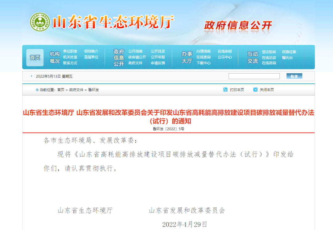 近日,山东省生态环境厅、省发展改革委联合印发《山东省高耗能高排放建设项目碳排放减量替代办法(试行)》,从“两高”行业源头控制入手严把新上项目的碳排放关。根据《办法》,我省16个“两高”行业的上游初加工、高耗能高排放环节新建投资项目纳入管理范围,拟建项目新增碳排放量需由其他途径落实替代源。替代源的碳排放量按行业确定1.2或1.5的替代比例,确保我省“两高”项目碳排放总量只减不增。据悉,我省是全国第一个出台“两高”行业碳排放减量替代办法的省份。
