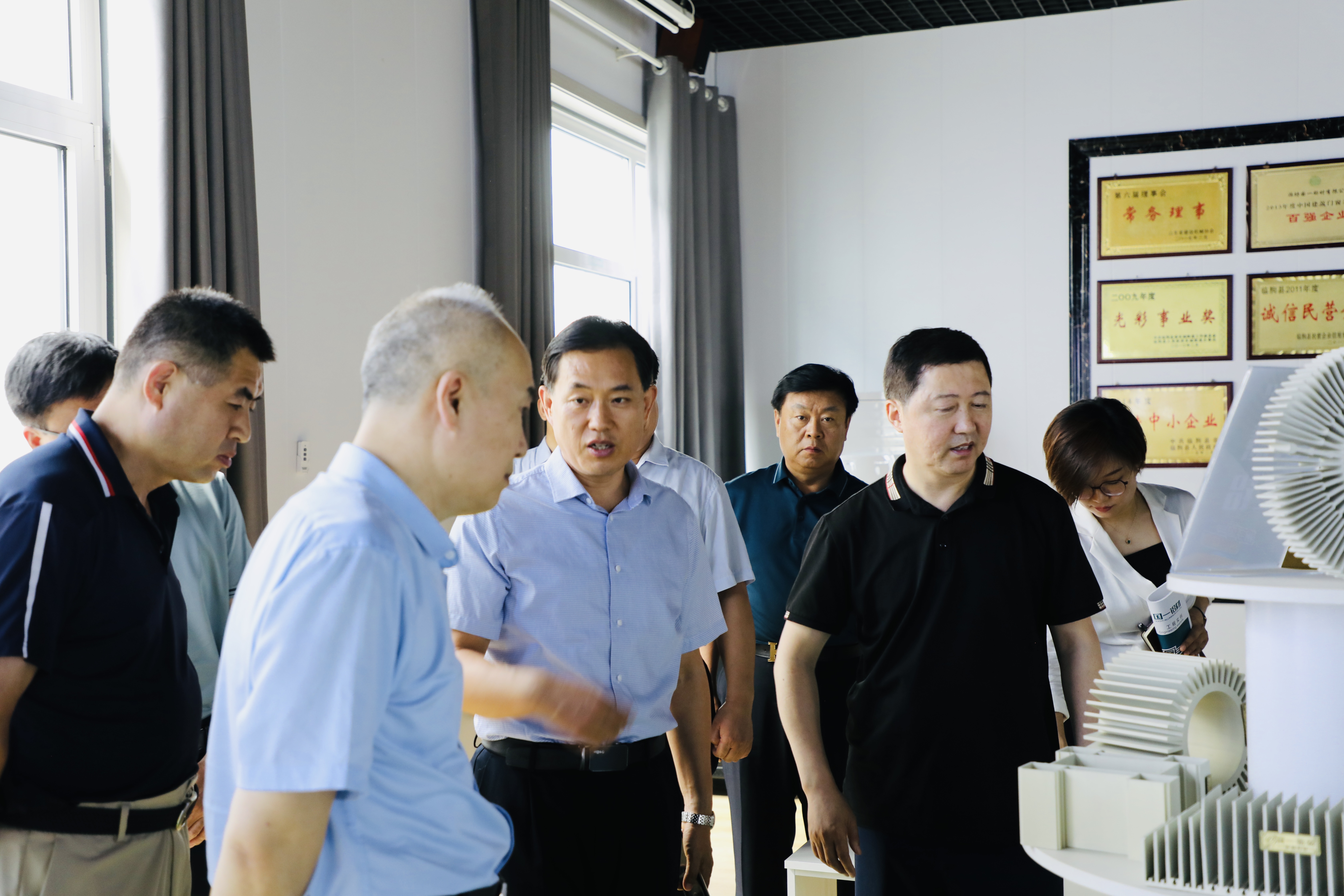 6月16日上午,潍坊东方企业家俱乐部走访新入会企业——潍坊国一铝材有限公司。临朐县工商联党组书记、副主席李贤军,潍坊东方企业家俱乐部会长王大威,常务会长韩宝晶、刘金富、监事长孙建文,副会长杨春恒、王建伟,副秘书长张帅帅、张光赞等参与活动。