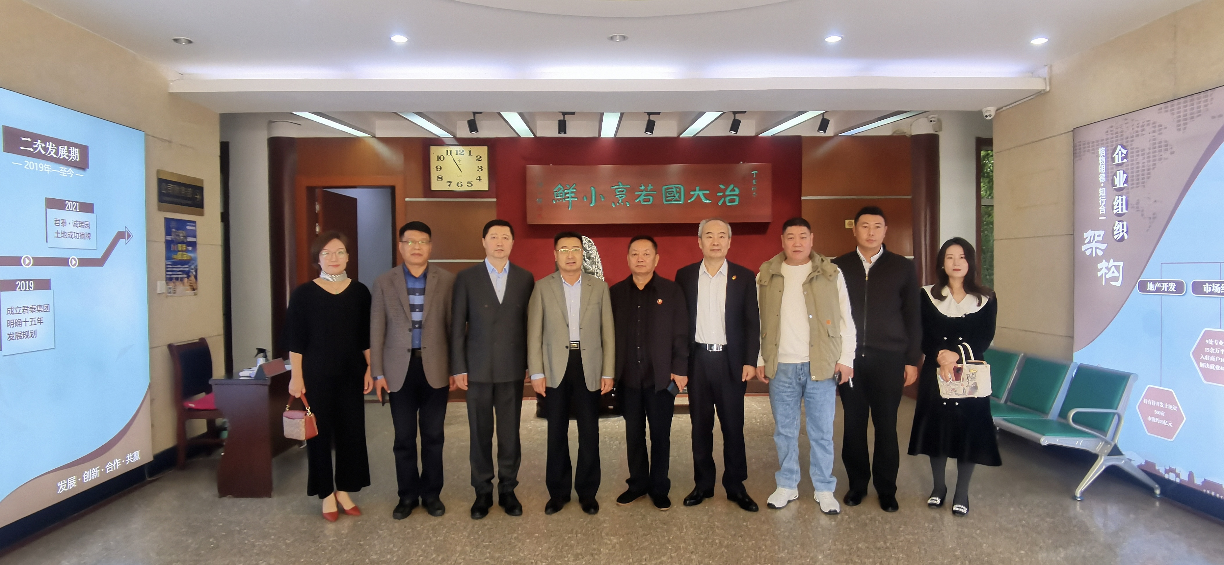 潍坊东方企业家俱乐部会长王大威,常务会长韩宝晶、张光文,驻会秘书长张帅帅;潍坊市钢铁贸易商会会长蒋世昌,秘书长王俊海,王佳璇,范永刚等参加此次走访。北苑街道商会会长,君泰集团党委书记王俊仁做热情接待。