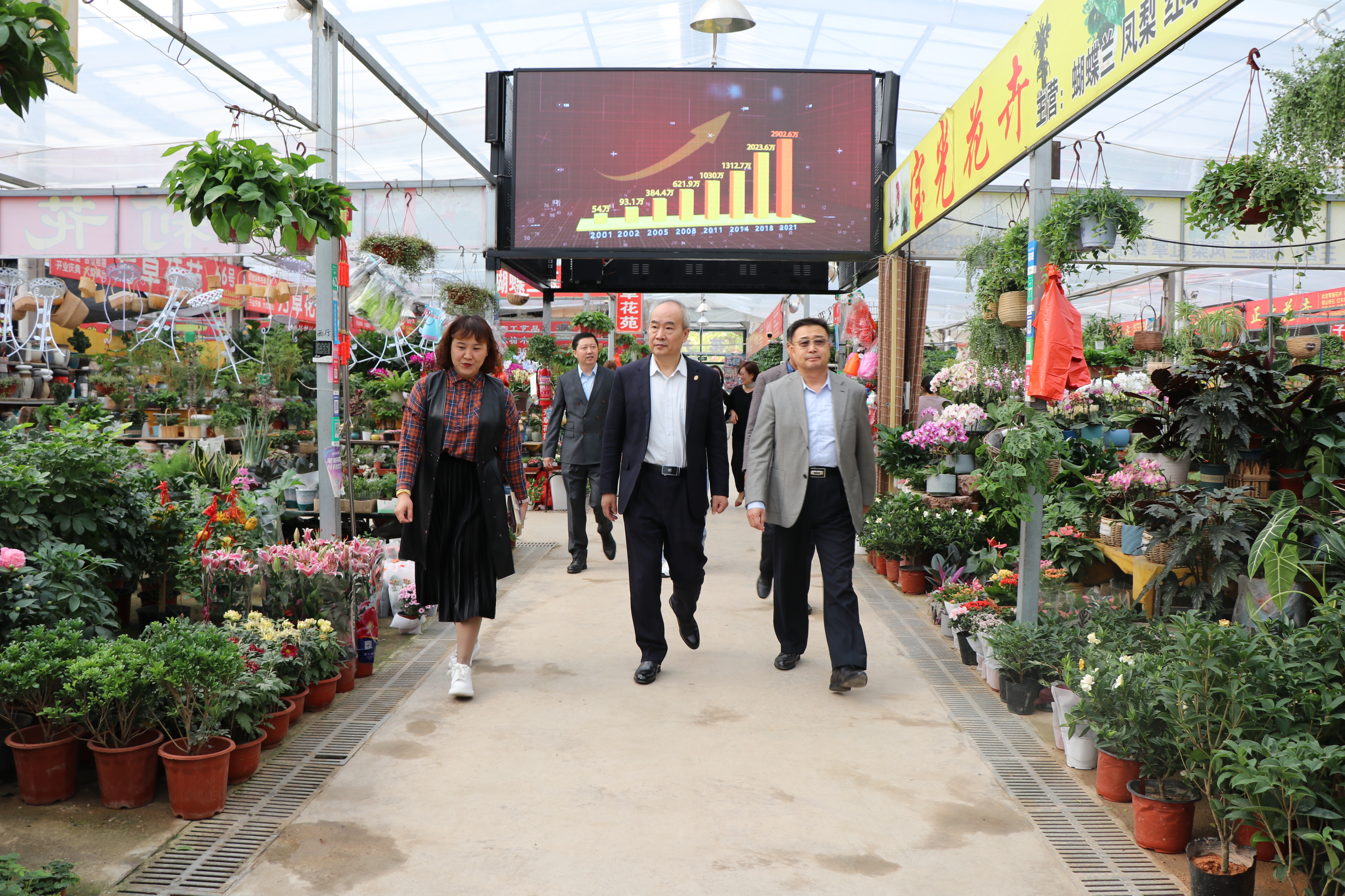 在工作人员的陪同下,走访人员参观了君泰花卉市场及君泰集团部分项目。随后座谈中,三方就彼此组织的具体情况、乡村振兴以及各自资源互惠赋能合作等方面进行了探讨交流。