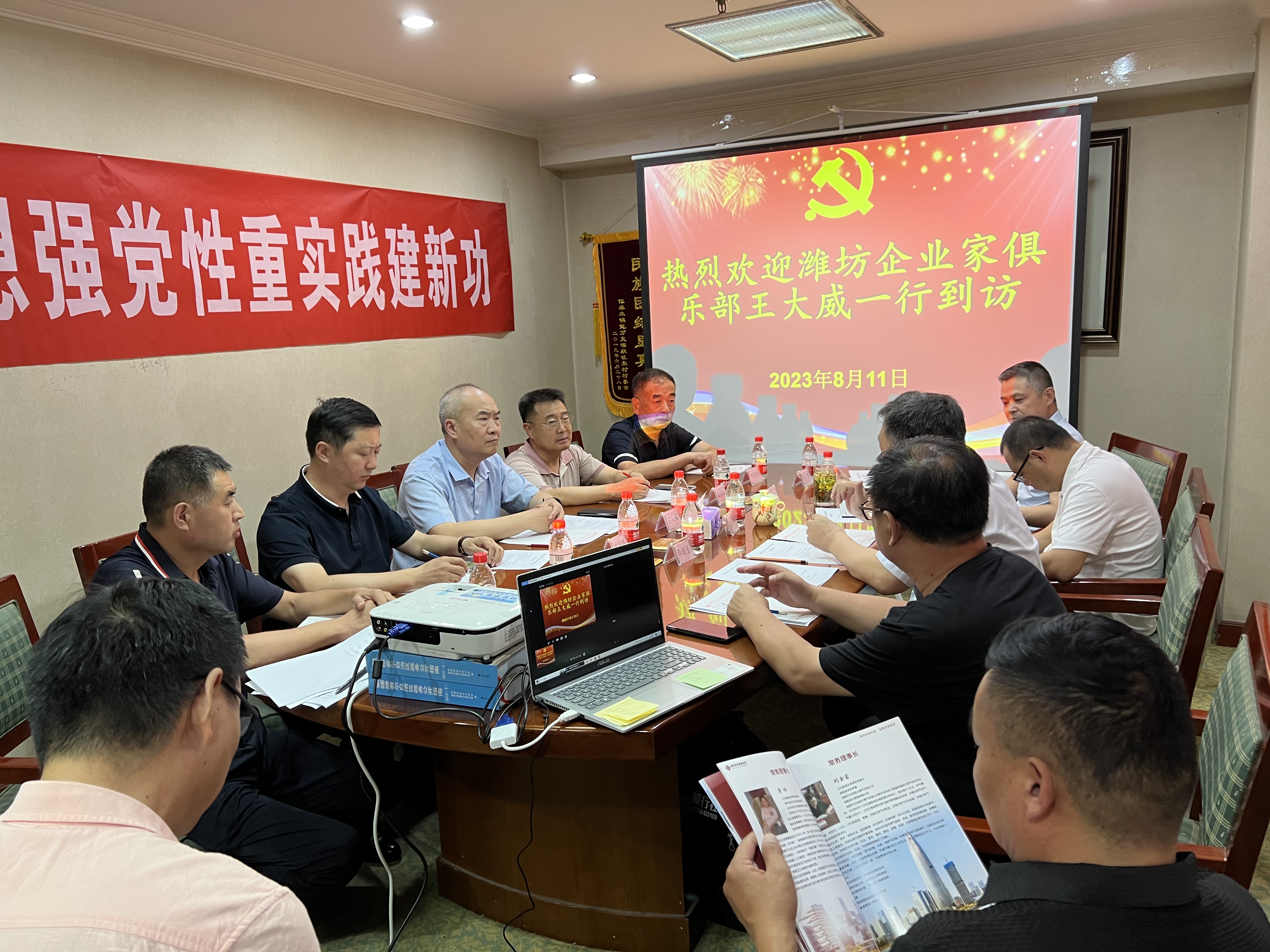 参与此次访问的有潍坊东方企业家俱乐部理事长王大威、潍坊市钢铁贸易商会会长蒋世昌(顾问)、常务理事长:韩宝晶(潍坊恒信建设集团副总裁)、程亚利(潍坊丰华(集团)公司党委书记)、刘金富(潍坊民生能源有限公司总经理)、监事长孙建文(山东乐化铝塑制品有限公司总经理)、副理事长代艳峰以及执行秘书长张帅帅。