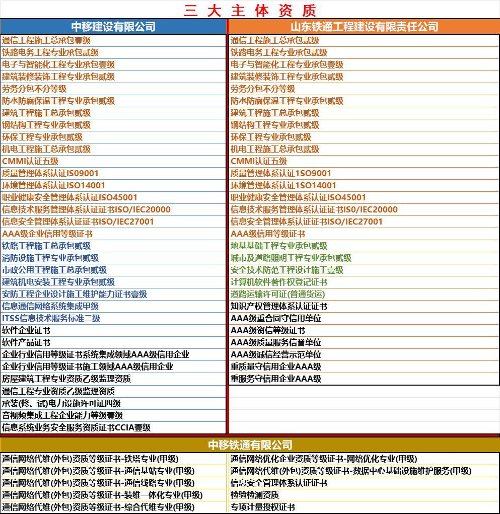 ◆山东铁通工程建设有限责任公司为中移铁通全资子公司,本部设在济南,山东铁通总经理任董事长、总经理,是铁通唯一专业从事铁路各类工程、信息化系统集成的科技型公司。根据中移铁通十四五发展规划,该公司作为信息科技型、总部型公司打造并运营,面向全国开展铁路通信信息工程承建、系统集成、智慧产业平台化运营。
