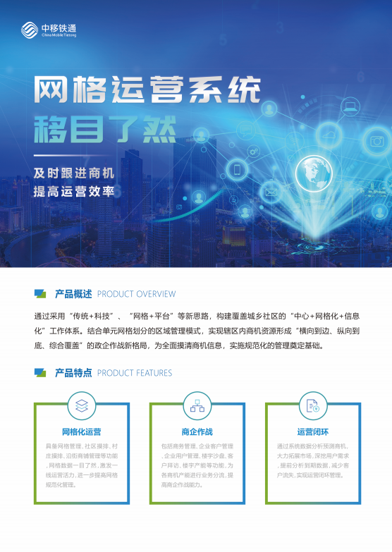 ◆中移铁通有限公司是中国移动通信集团旗下专业从事数智服务、数智工程全资子公司,在中国移动“世界一流信息服务科技创新公司”新定位的指引下,致力于成为“国内领先的数智服务提供商”。主营通信工程、数智工程,基于5G 行业应用的系统集成、通信技术服务。中移铁通有限公司山东分公司是中移铁通在山东省设立的分公司,下辖17 个经营单位,具备省、市、区(县)三级组织体系,面向全省乃至全国,围绕“数智服务,数智工程”领域,提供技术咨询、解决方案,软件开发、系统集成、交付施工、安全防护、运维支撑等服务。