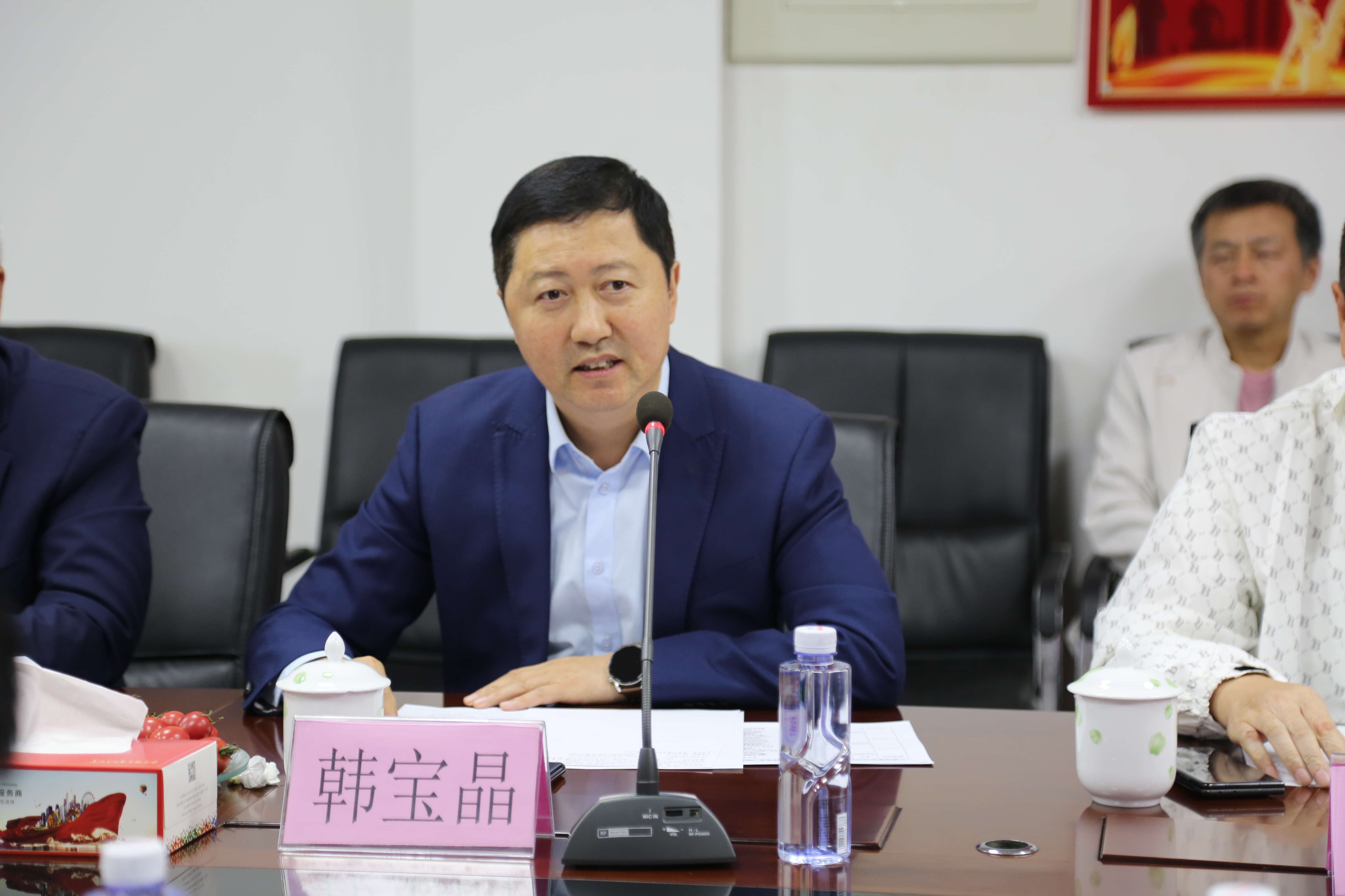 常务理事长韩宝晶主持会议并宣读《潍坊东方企业家俱乐部第三届理事会轮值理事长工作办法》。