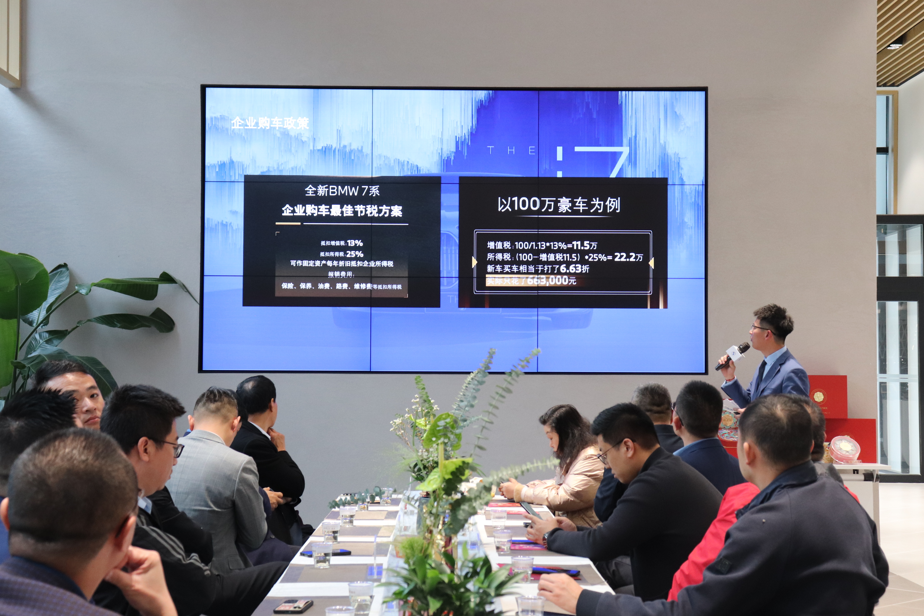 宝马4S店的工作人员向大家介绍了几款热门车型的具体情况及专属潍坊东方企业家俱乐部会员的优惠政策。