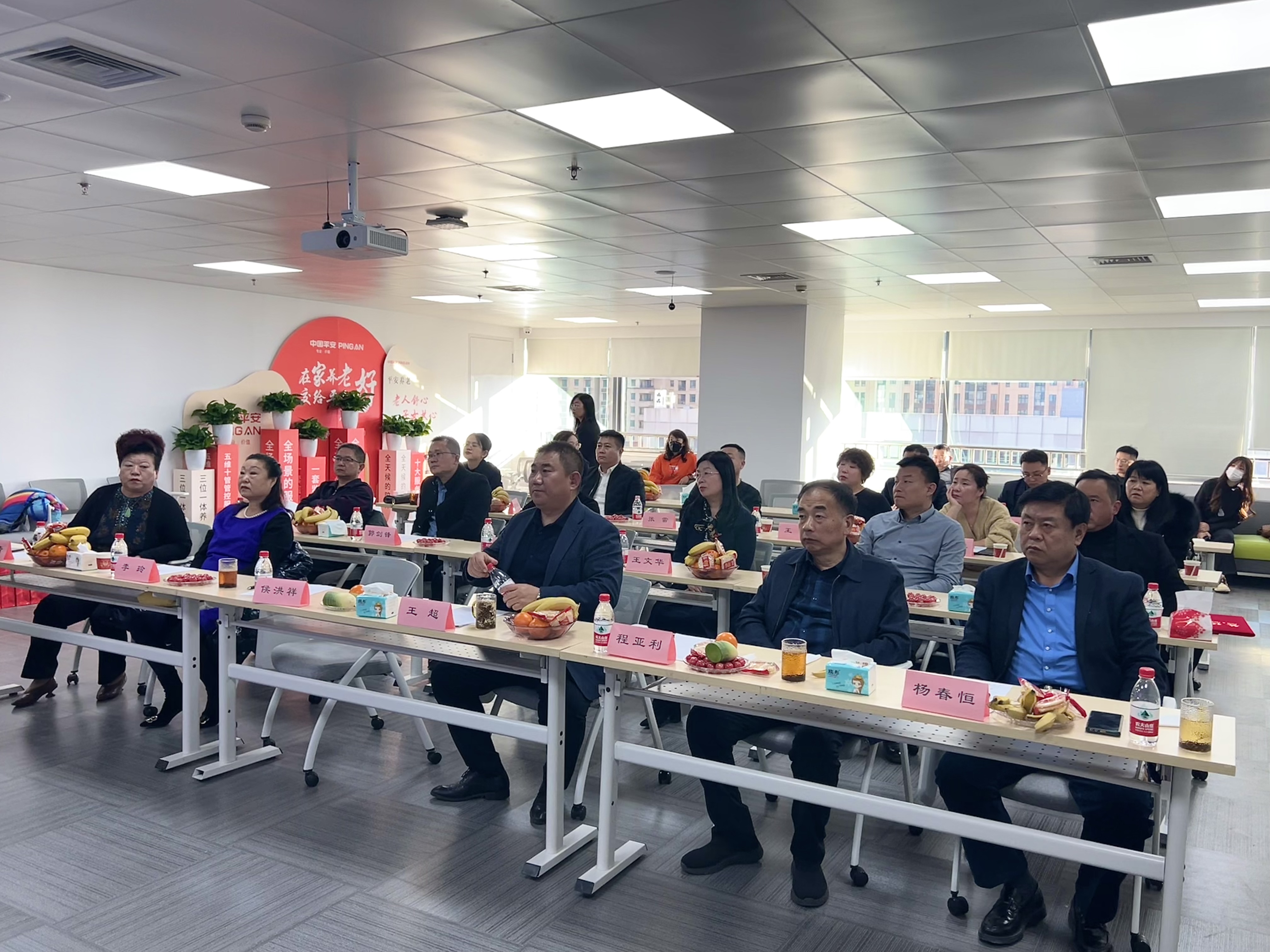 平安人寿潍坊奎文支公司李海东经理与绿城·江南赋营销总监王莹分别带来居家养老项目与高品质住房项目分享。随后与会人员依次进行自我介绍与交流。