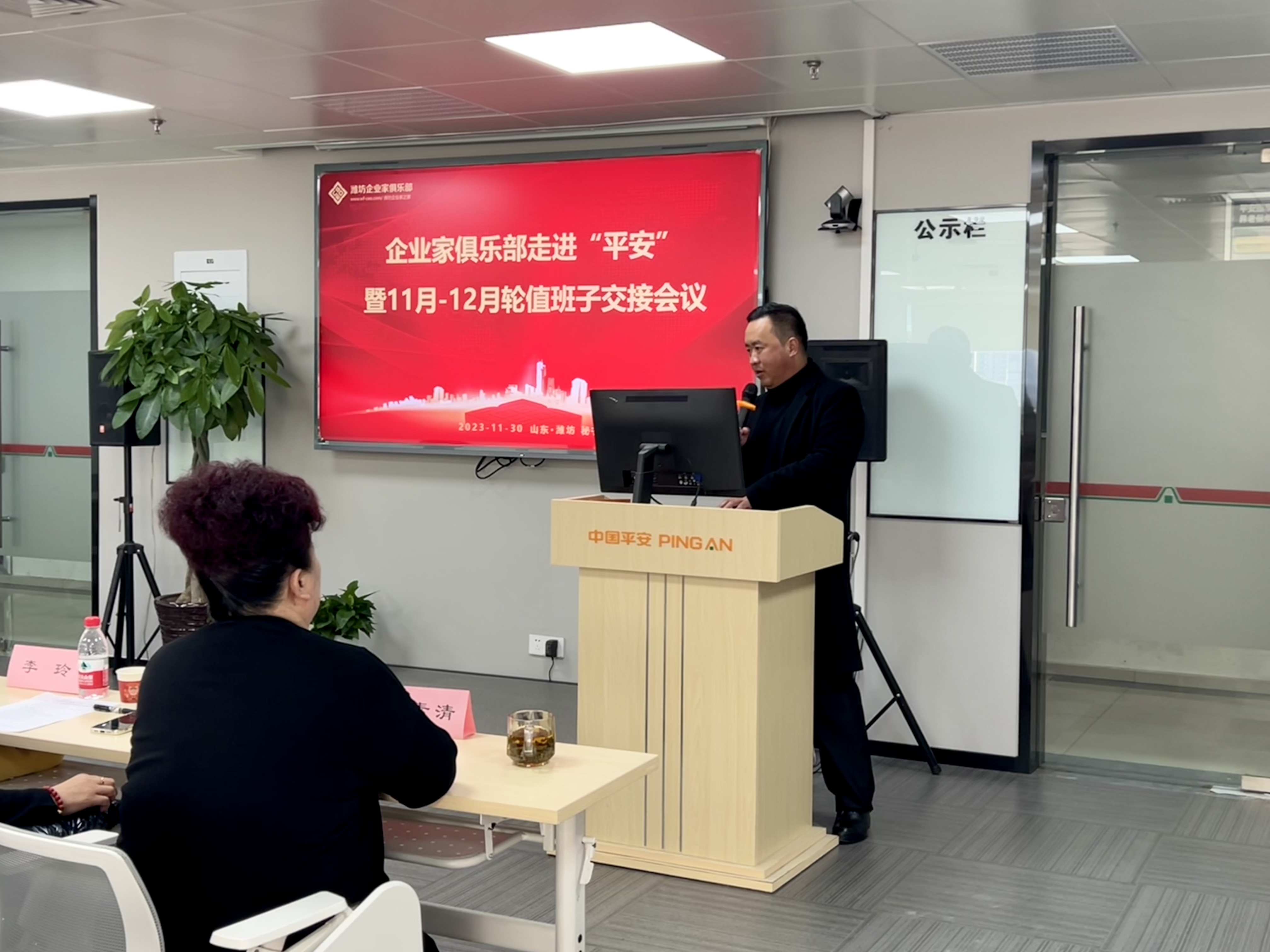 潍坊东方企业家俱乐部11月轮值理事长、东方好莱坞文投公司董事长王超,12月轮值理事长、山东华安集团有限公司执行总裁侯洪祥,常务理事长:潍坊丰华(集团)公司党委书记程亚利、山东永博文化创意集团公司董事长李玲,11月轮值副理事长:中国平安人寿保险股份有限公司潍坊支公司资深总监林素清、山东衡明律师事务所主任杨春恒、山东润士通文化传媒有限公司总经理郭剑锋,12月份轮值副理事长:潍坊铭致惠建设工程有限公司董事长郝惠娟,副理事长:潍坊龙创知识产权代理有限公司总经理李树祥、山东致恒儒雅企业管理咨询有限公司总经理王文华、斧创(上海)农业科技有限公司联合创始人卢兴国,12月轮值副秘书长:山东华安集团有限公司峡山园区副总经理樊泽选、山东诗得莱斯服装有限公司总经理王娜,副秘书长、潍坊威龙电子商务科技有限公司总经理王翠萍,12月轮值理事、广汇汽车潍坊汇合丰田汽车销售服务有限公司总经理刘法学,理事、潍坊康鑫建筑机械租赁中心董事长张雷,执行秘书长张帅帅及副理事长单位绿城·江南赋代表、VIP会员单位仁德利康体检中心代表等参加此次会议。