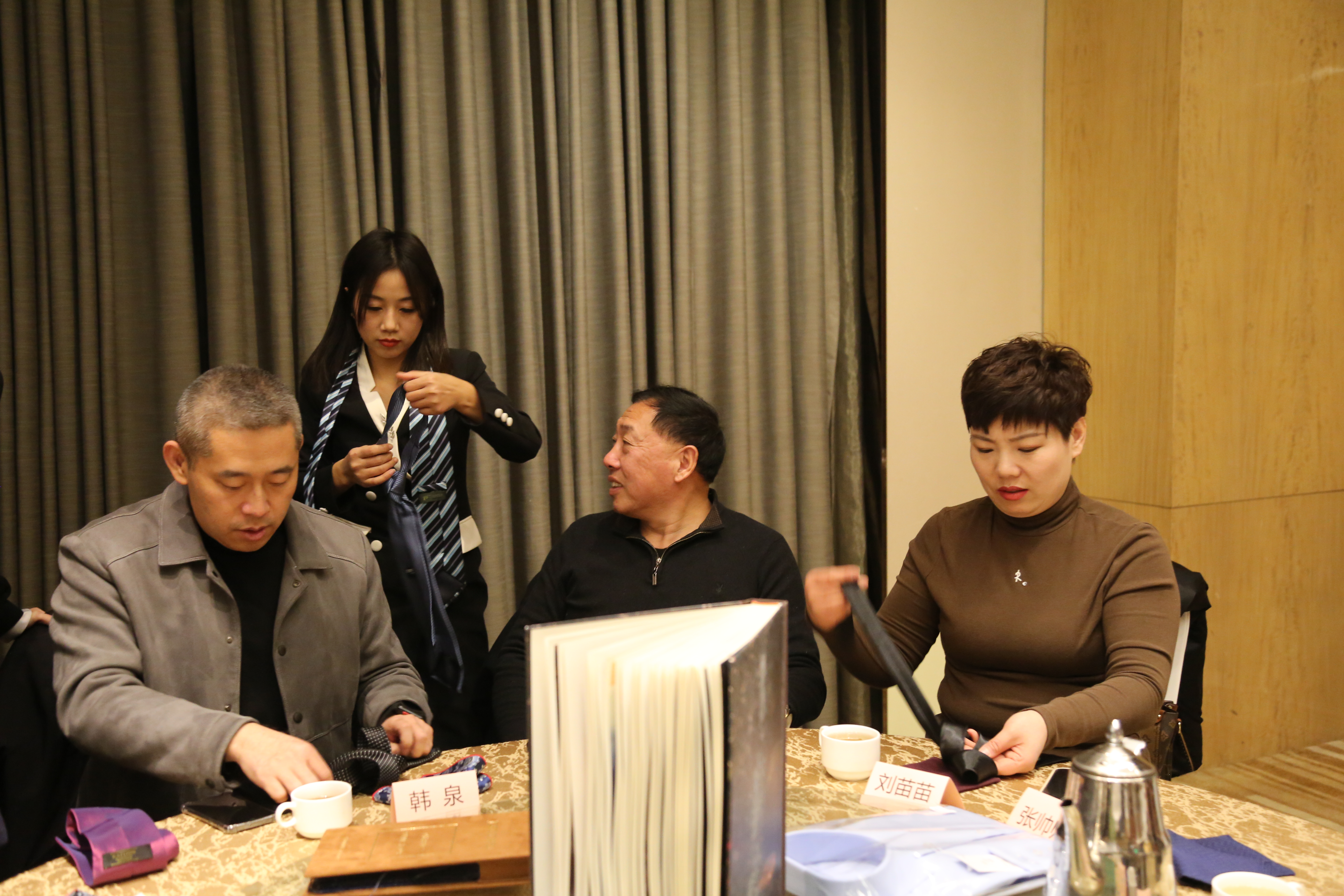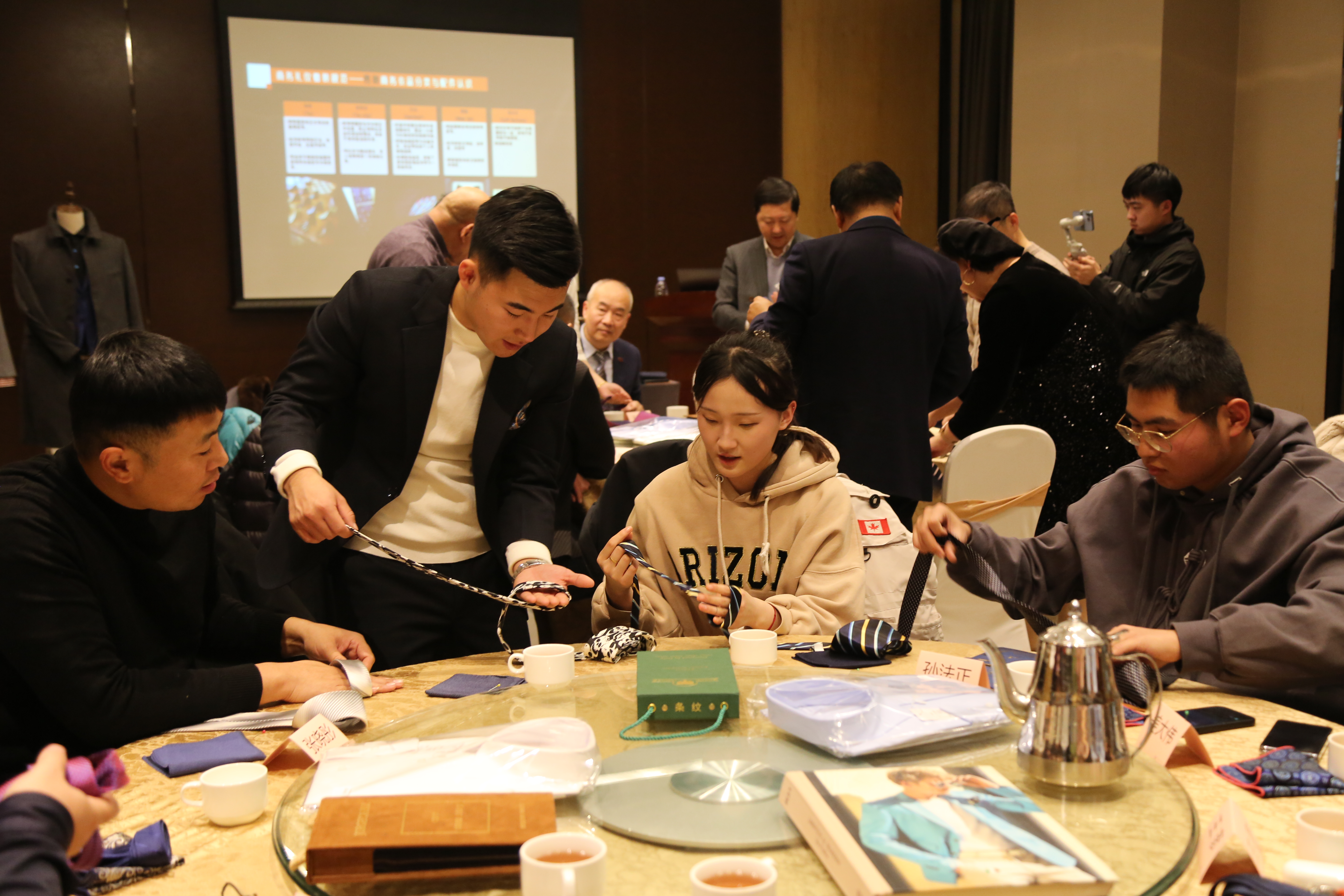潍坊东方企业家俱乐部诗得莱斯活动中心邀请到CMC国际注册高级服装设计师、国际注册形象管理咨询师李欣为大家分享国内外不同风格、不同场合的穿搭风格与穿搭思路,将不同款式细节一一呈现给大家,手把手教学领带、方巾的不同系法,寓教于乐,大家纷纷表示收获满满。