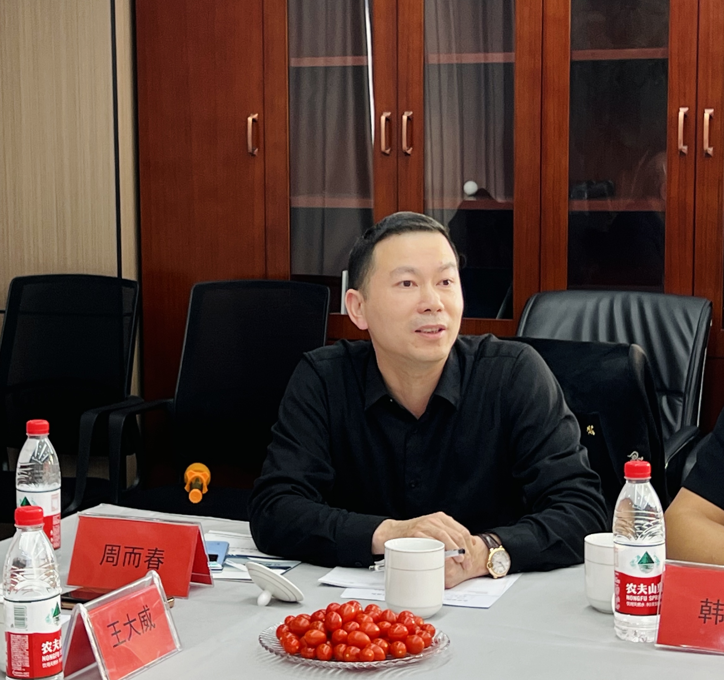 2023年12月轮值理事长侯洪祥与2024年1月轮值理事长王建、周而春进行轮值交接仪式。