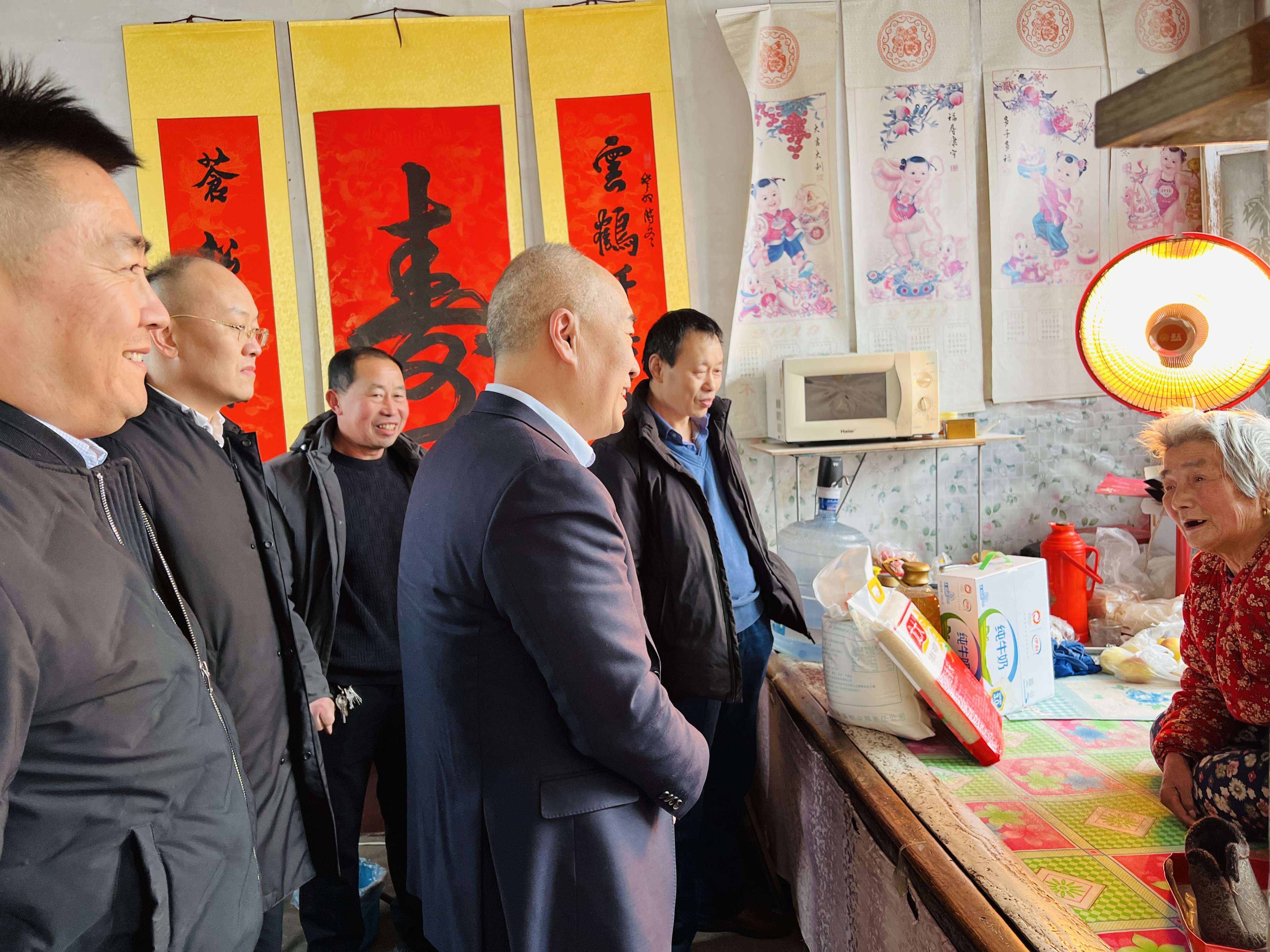 走访队伍带着米、面、奶、油等生活物资到困难群众家里去,同他们亲切交谈,详细了解他们的生活情况和身体状况,叮嘱他们一定要保重身体,并向他们致以节日的问候和美好祝愿。