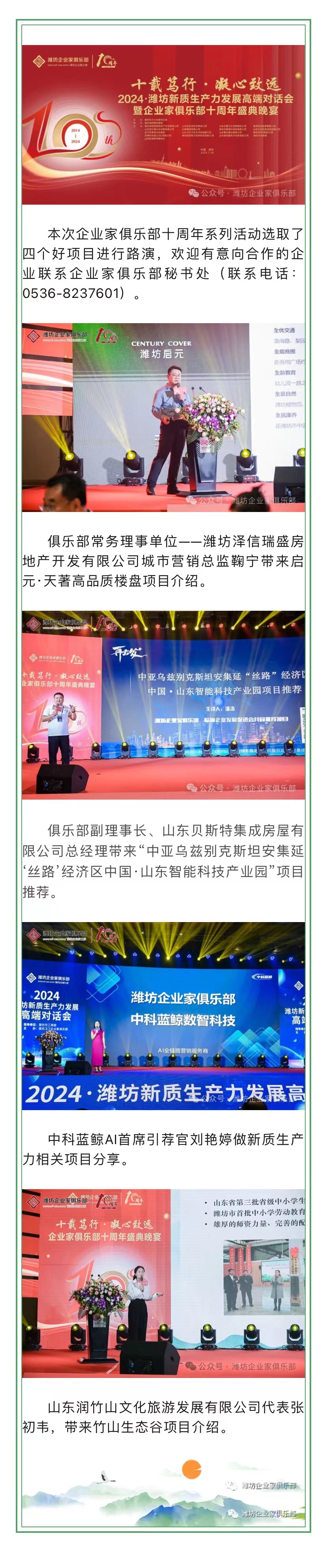 潍坊东方企业家俱乐部十周年系列活动之优选项目篇