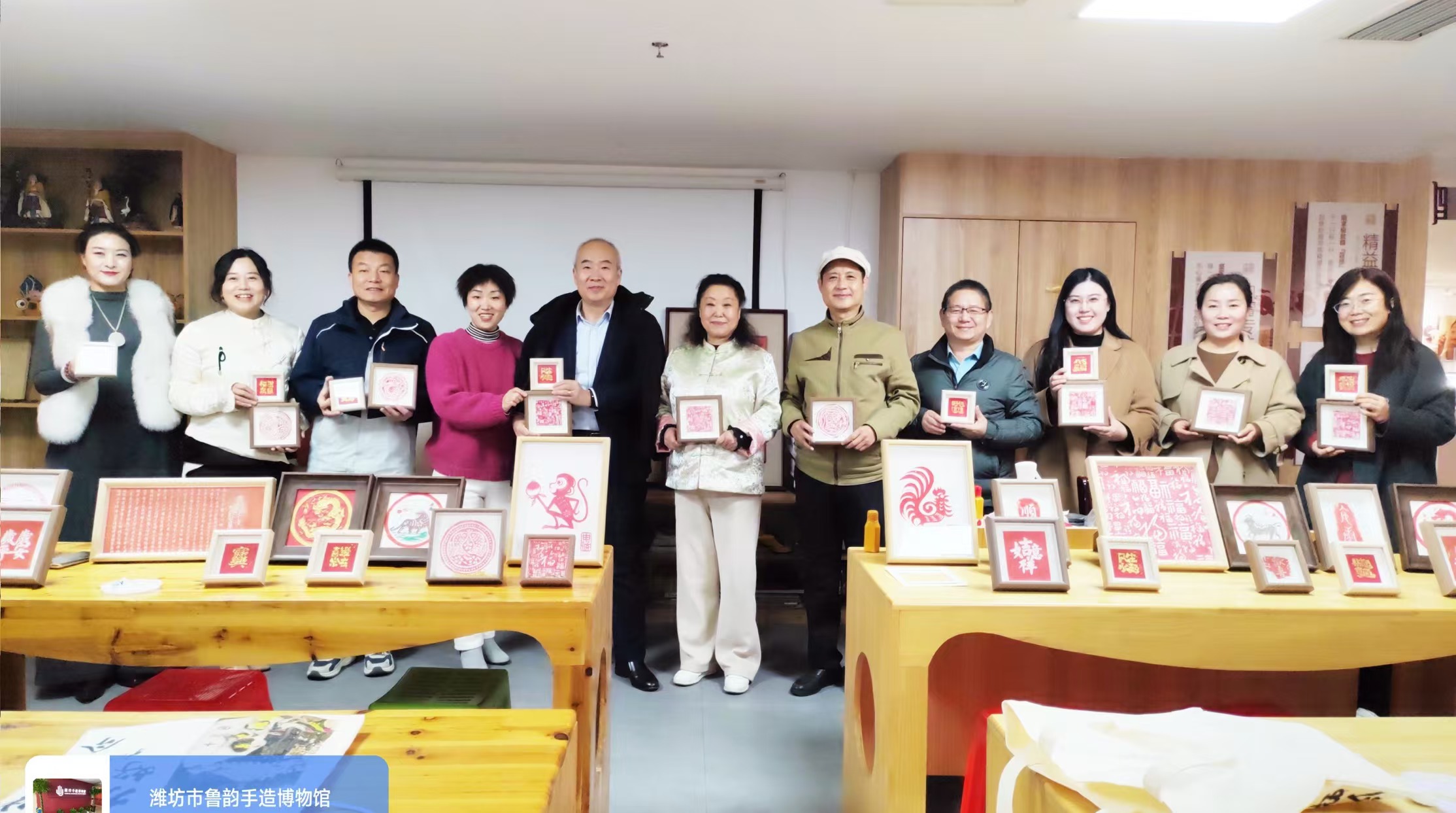 在山东省工艺美术协会副会长、潍坊市工艺美术协会书记丁传信,潍坊市工艺美术协会会长周美容,潍坊市工艺美术协会秘书长邢顺建的带领下,潍坊东方企业家俱乐部一行参观了潍坊手造博物馆,在传拓非遗技艺传承人丁珊珊的指导下体验非遗“传拓”民族文化,深入了解了潍坊地区的传统手工艺和文化遗产。博物馆内丰富的展品和生动的解说让潍坊东方企业家俱乐部一行感受到潍坊传统文化的魅力与深厚底蕴,也激发了大家对文化传承与创新的思考。