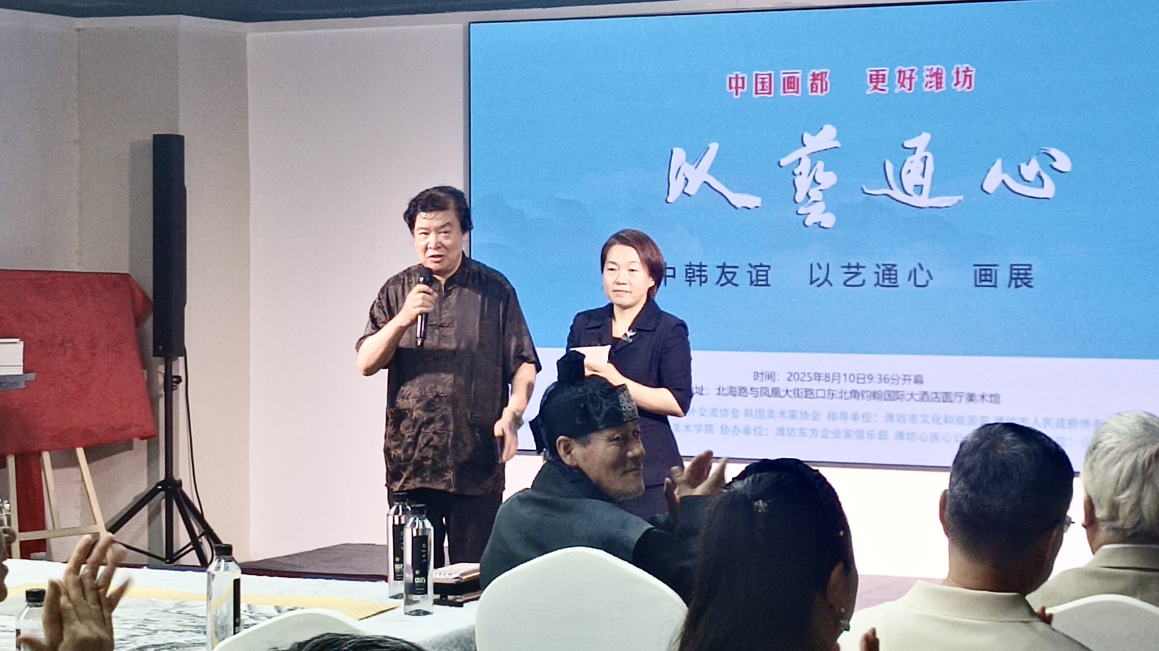 8月10日上午,由潍坊书画艺术对外交流协会主办,潍坊东方企业家俱乐部等协办的中韩友谊“以艺通心”画展在钧翰国际大酒店圆厅美术馆隆重开幕。本次画展不仅是艺术的盛会,更是中韩两国文化交流的重要桥梁。