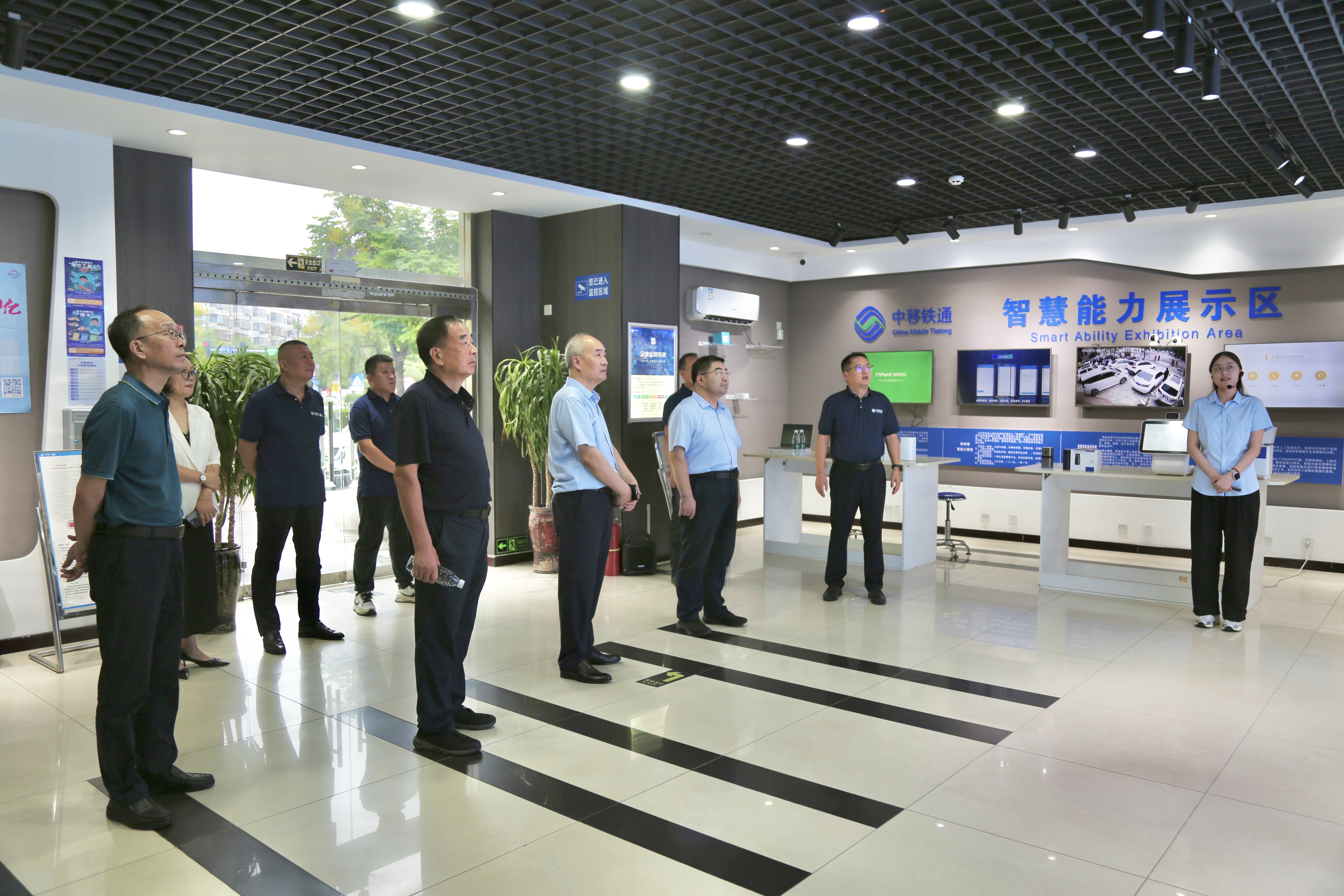会后,考察团参观了中移铁通潍坊分公司。总经理葛学诗现场演示了5G+智慧城市、企业互联网等前沿技术应用场景,双方就如何通过媒体传播助力企业技术成果转化展开探讨。