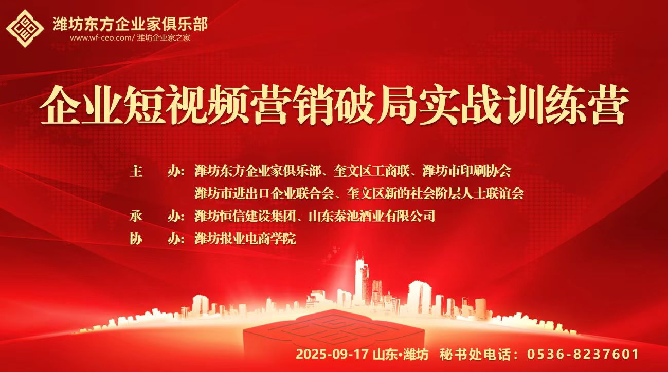 9月17日,潍坊东方企业家俱乐部(以下简称“俱乐部”)联合奎文区工商联、潍坊市印刷协会、潍坊市进出口企业联合会、奎文区新联会等机构,共同举办的“企业短视频营销破局实战训练营”在恒信大厦第一会议室圆满落下帷幕。