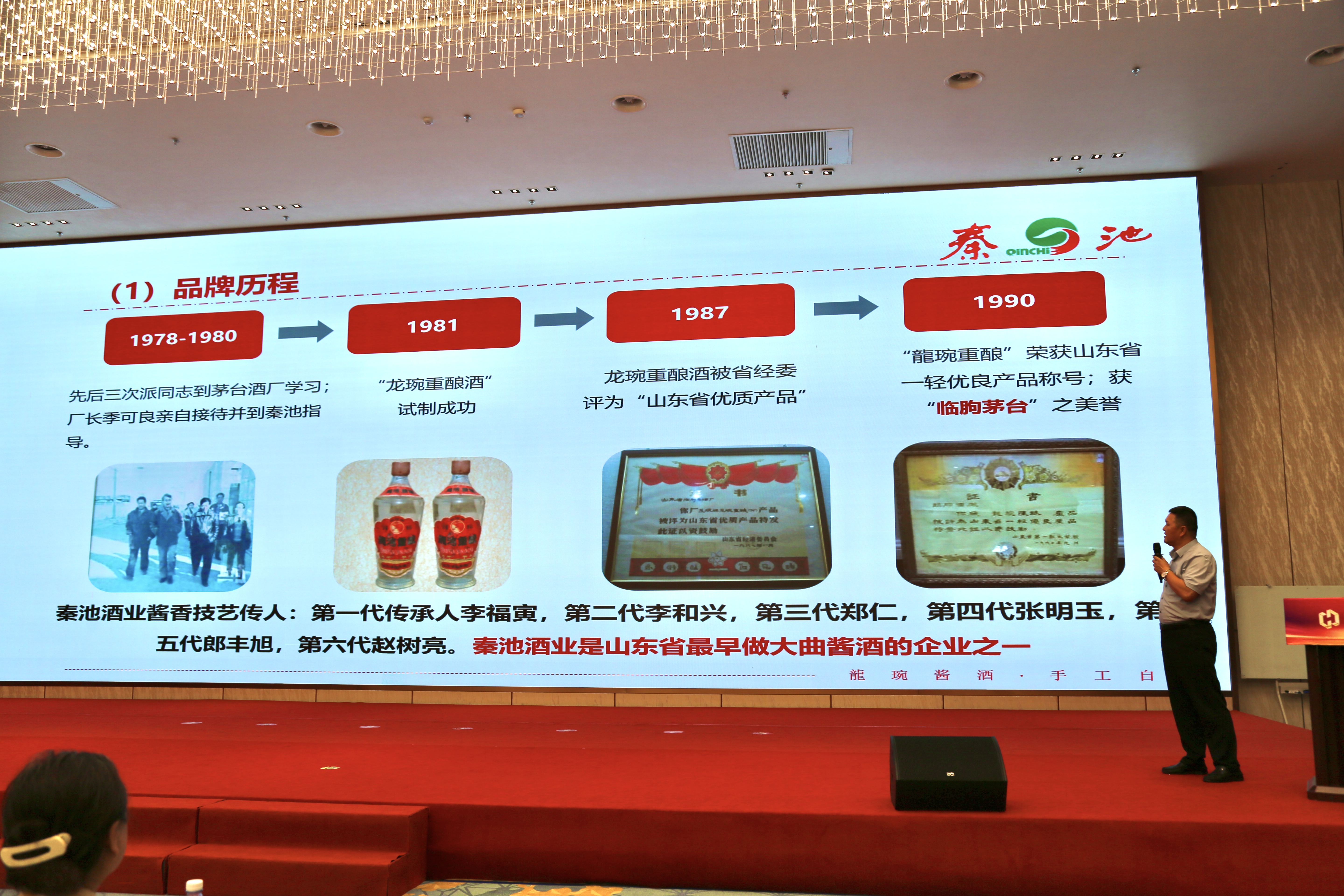 秦池酒业潍坊办事处经理刘风华为大家介绍了潍坊人耳熟能详的秦池酒。这家扎根齐鲁大地的老字号企业,承载着几代人的味觉记忆,在传承传统酿造工艺的同时不断创新,将传统与现代定制服务完美融合,为现场企业家们带来了一场专属的中秋酒香之旅。