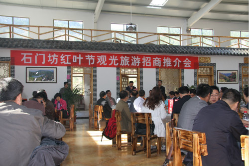 下午2时 举行游览石门坊自由观赏考察事项。各位领导一边考察一边交流沟通问题,对“石门坊红叶节观光旅游招商推介会”充分肯定。有投资意向的企业家纷纷与推荐方积极进行接洽沟通。