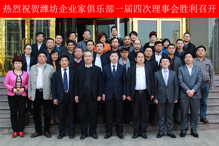 芳菲四月,姹紫嫣红,草长鸢飞,春光无限。4月9日潍坊东方企业家俱乐部一届四次理事会在泛海大酒店胜利召开。会议气氛热烈,凝心聚力,充满正能量。会上审议通过了《潍坊东方企业家俱乐部2015年发展纲要及工作计划实施细则》;调整增补了理事会成员,并现场进行了表决;对部分理事会成员颁发了奖牌;王大威会长详细讲解了潍坊东方企业家俱乐部品牌商城运营模式,引起大家极大关注,将会议推向高潮。