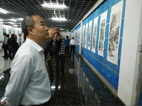 (潍坊东方企业家俱乐部会长王大威参观画展作品)