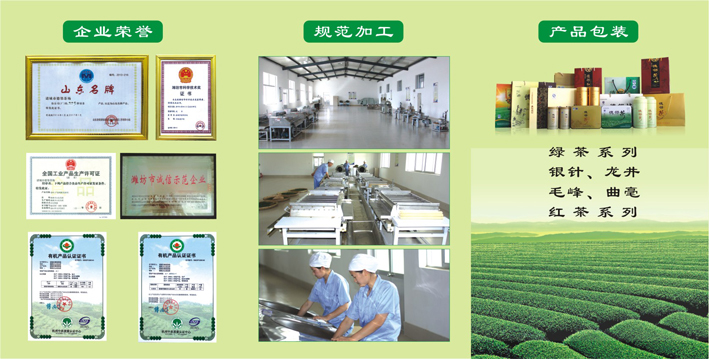 山东诸城德邻茶场,位于被誉为“绿茶北极”的诸城市桃林镇,是全市规模最大,设备最先进,并最先建起有机生态茶园基地,集茶叶种植、加工、营销和观光旅游、茶文化研究于一体的茶业龙头企业。数年来,公司坚持高起点、高标准、高品位,靠质量、靠信誉、靠服务、靠品牌,赢得了社会的广泛赞誉和广大消费者的青睐。2008年通过国家食品工业产品认证。2009年,企业生产的绿茶被中国农科院茶叶研究所认定为有机绿茶。2010年企业被确定为潍坊市农业产业化重点龙头企业,并成为中国北方茶产业技术创新战略联盟会员单位。2011年在全市举行的“首界品茶节”上,该企业产品被评为第一名。2012年企业又研发出德邻红茶,并顺利通过省科技厅专家鉴定。2013年,企业生产的绿茶又被评为“山东名牌”,成为名副其实的齐鲁名茶。