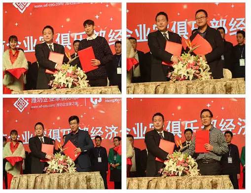 潍坊东方企业家俱乐部执行秘书长张明伟首先介绍了潍坊东方企业家俱乐部经济合作联盟相关情况。随后,潍坊东方企业家俱乐部同潍坊恒信建设集团、山东乐化铝塑制品有限公司、潍坊丰华(集团)公司、潍坊中盛民间资本管理有限公司、潍坊鑫恒泰公司、潍坊市双庆电器有限公司潍坊东方好莱坞国际娱乐连锁机构、威龙电子商务科技有限公司、山东永博文化创意有限公司、新晨报潍坊早读、山东鑫富实业有限公司、潍坊吉缘堂中医研究所、山东衡明律师事务所、圆通快递潍坊公司、潍坊无敌家智能科技有限公司、潍坊电台最爱调频98.3、尚影堂文化传媒有限公司潍坊美年大健康健康管理有限公司、潍坊京华印务有限责任公司、芝兰花府、潍坊圆梦文化传媒、潍坊百耀进出口贸易有限公司20多家企业进行签约。